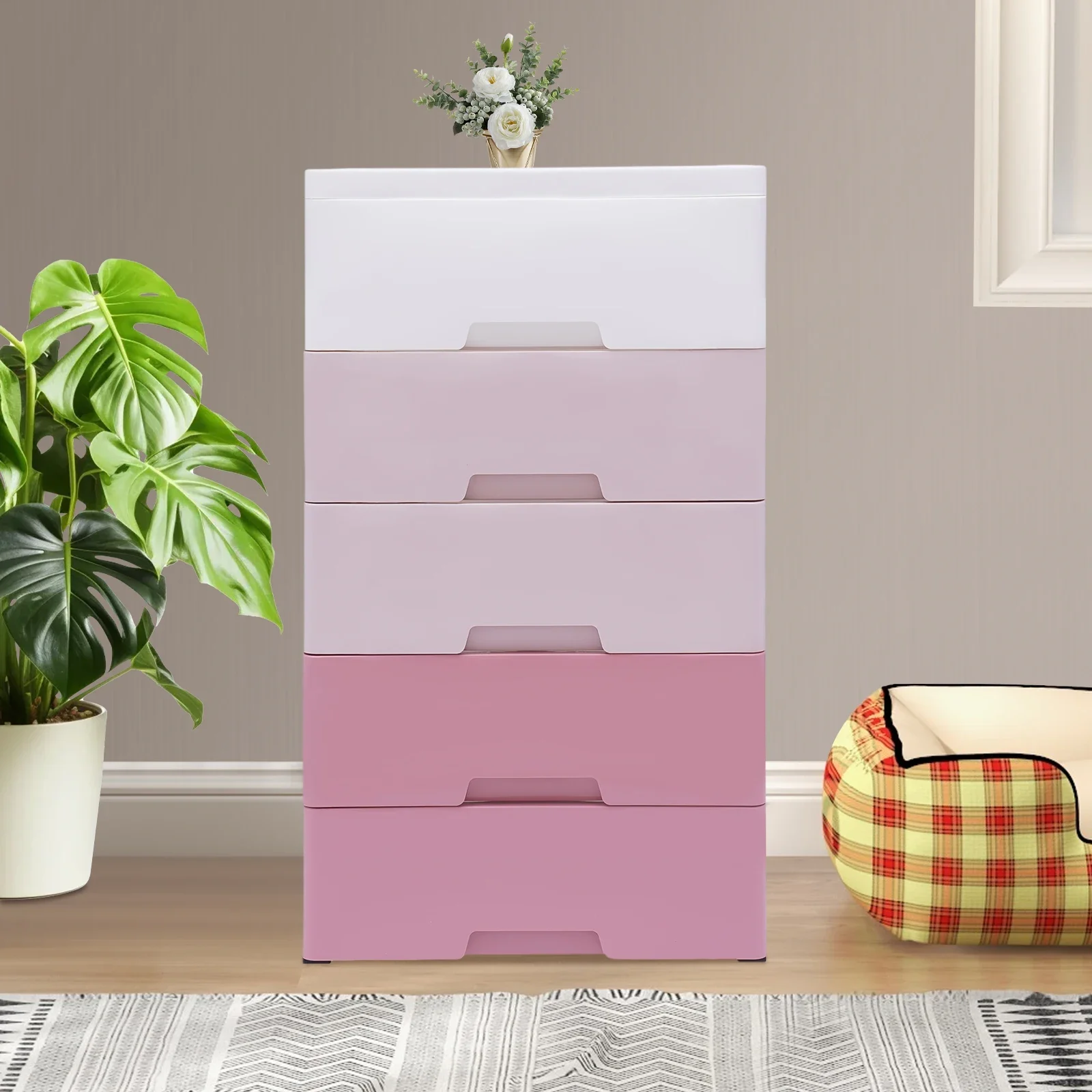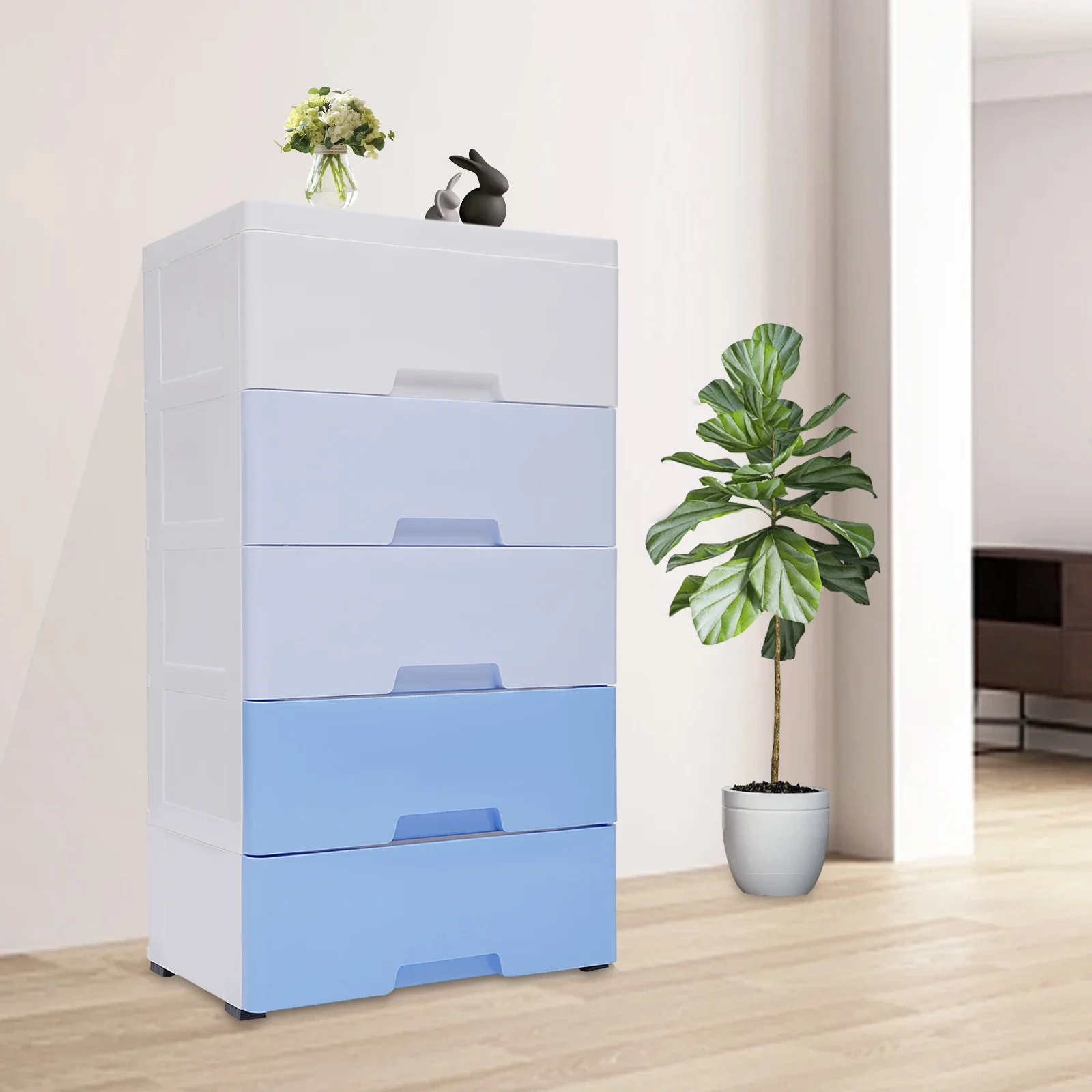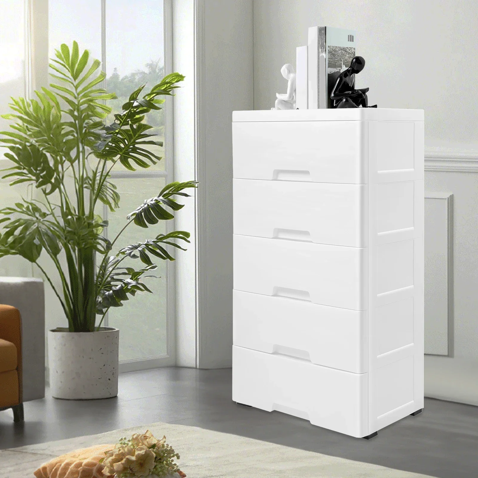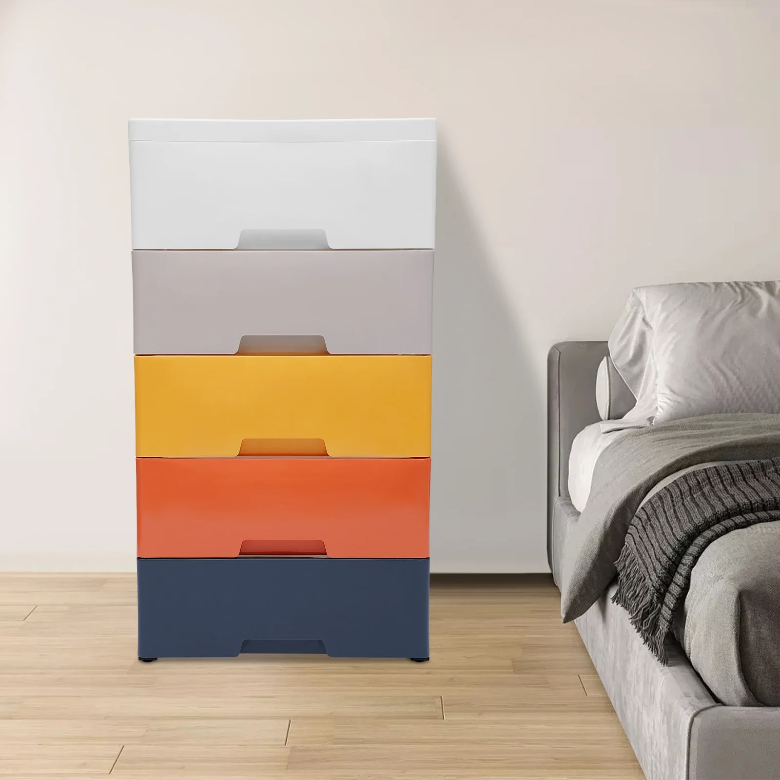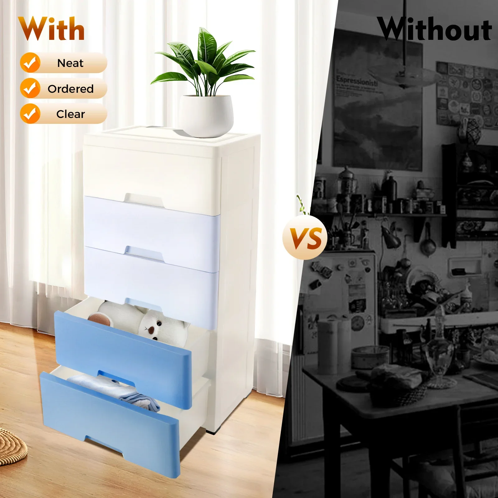 [5-Drawer Plastic Storage Cabinet] 5-Drawer PP Plastic Storage Cabinet - Stackable Vertical for Bedroom Hallway - Organizer Unit