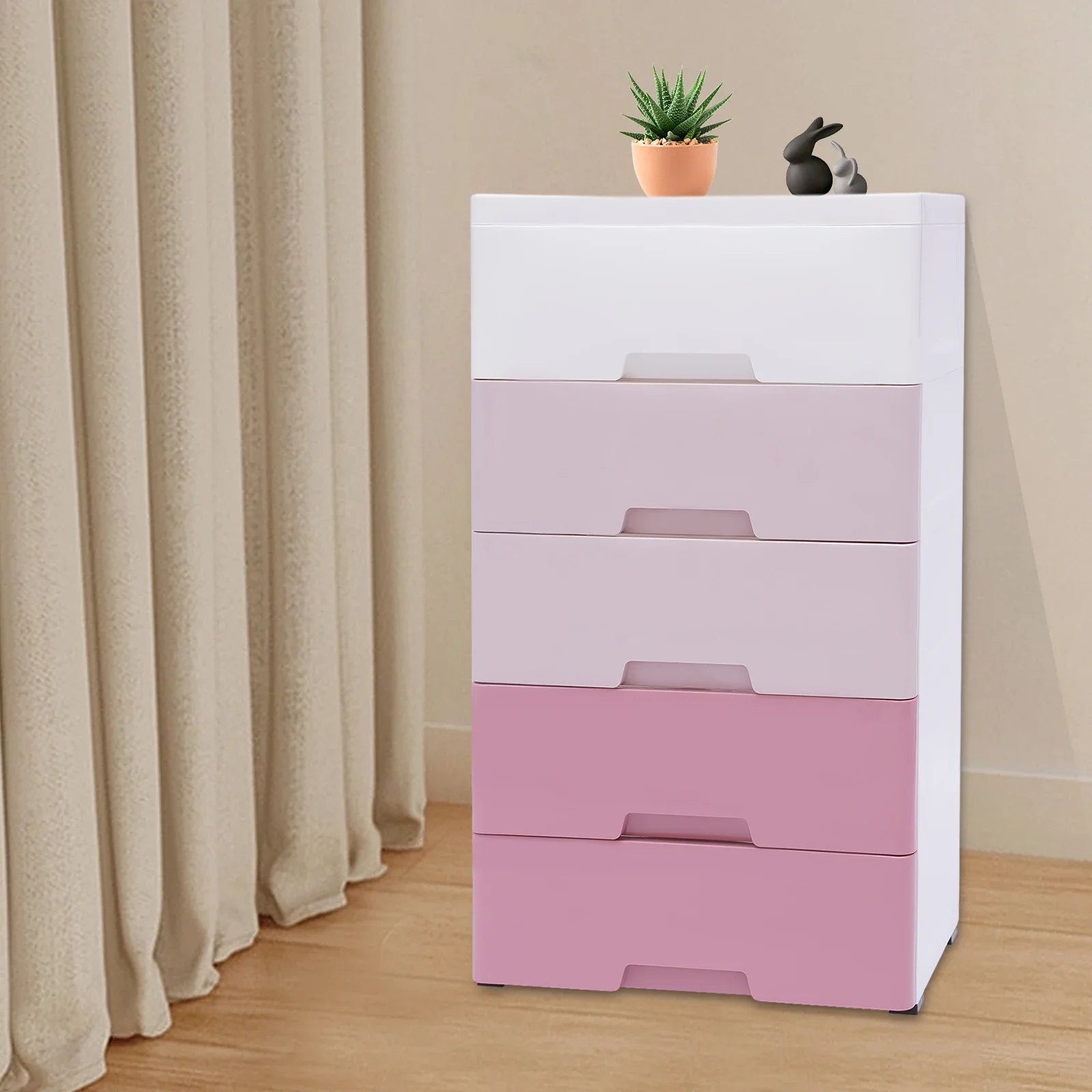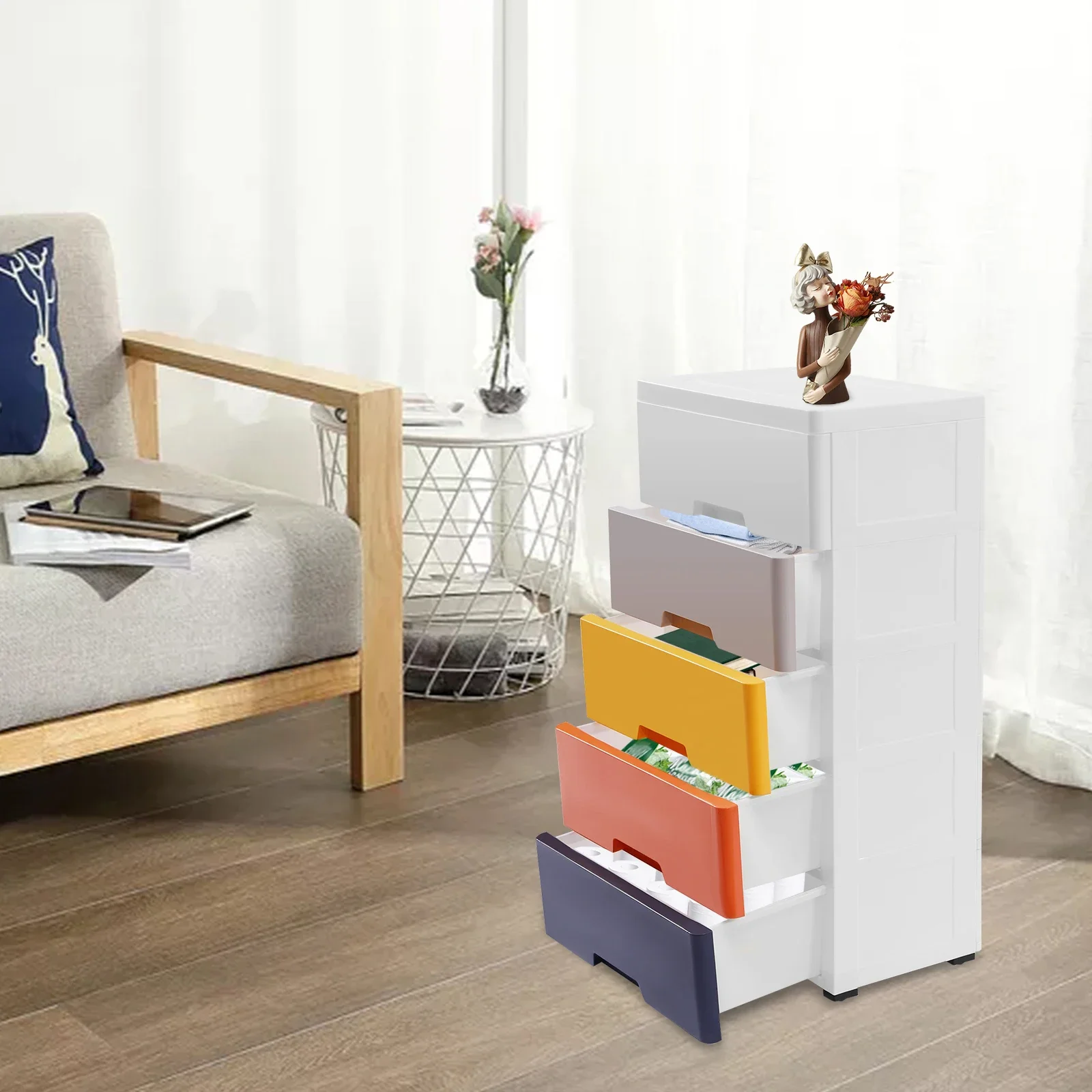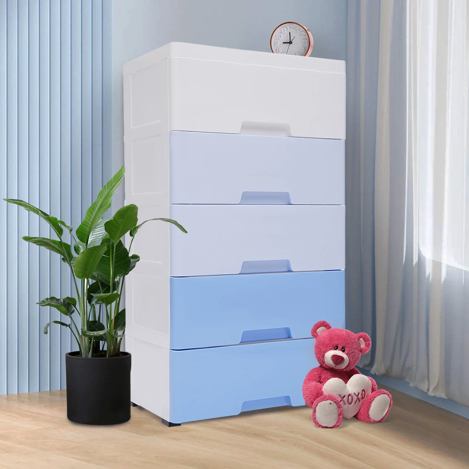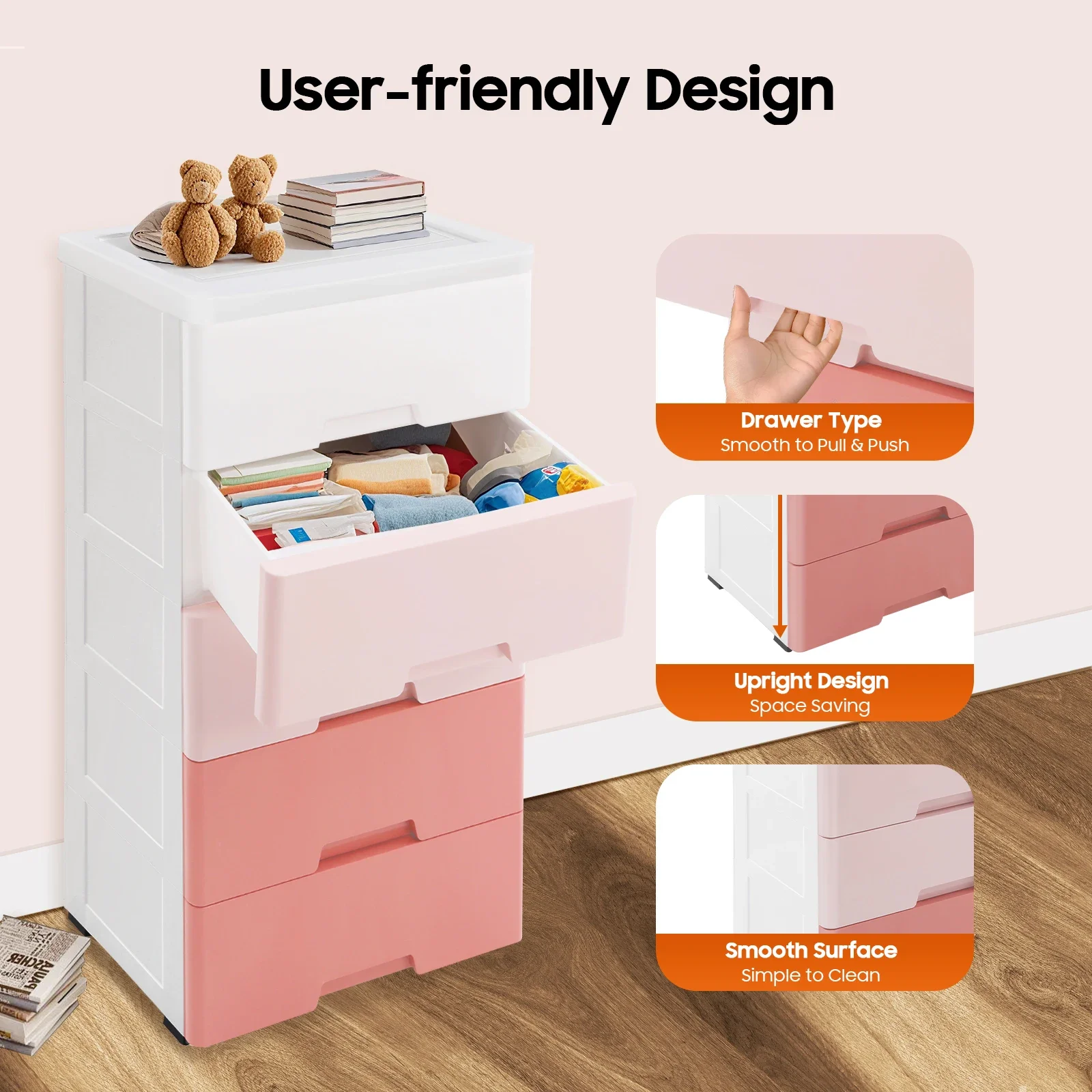 [5-Drawer Plastic Storage Cabinet] 5-Drawer PP Plastic Storage Cabinet - Stackable Vertical for Bedroom Hallway - Organizer Unit