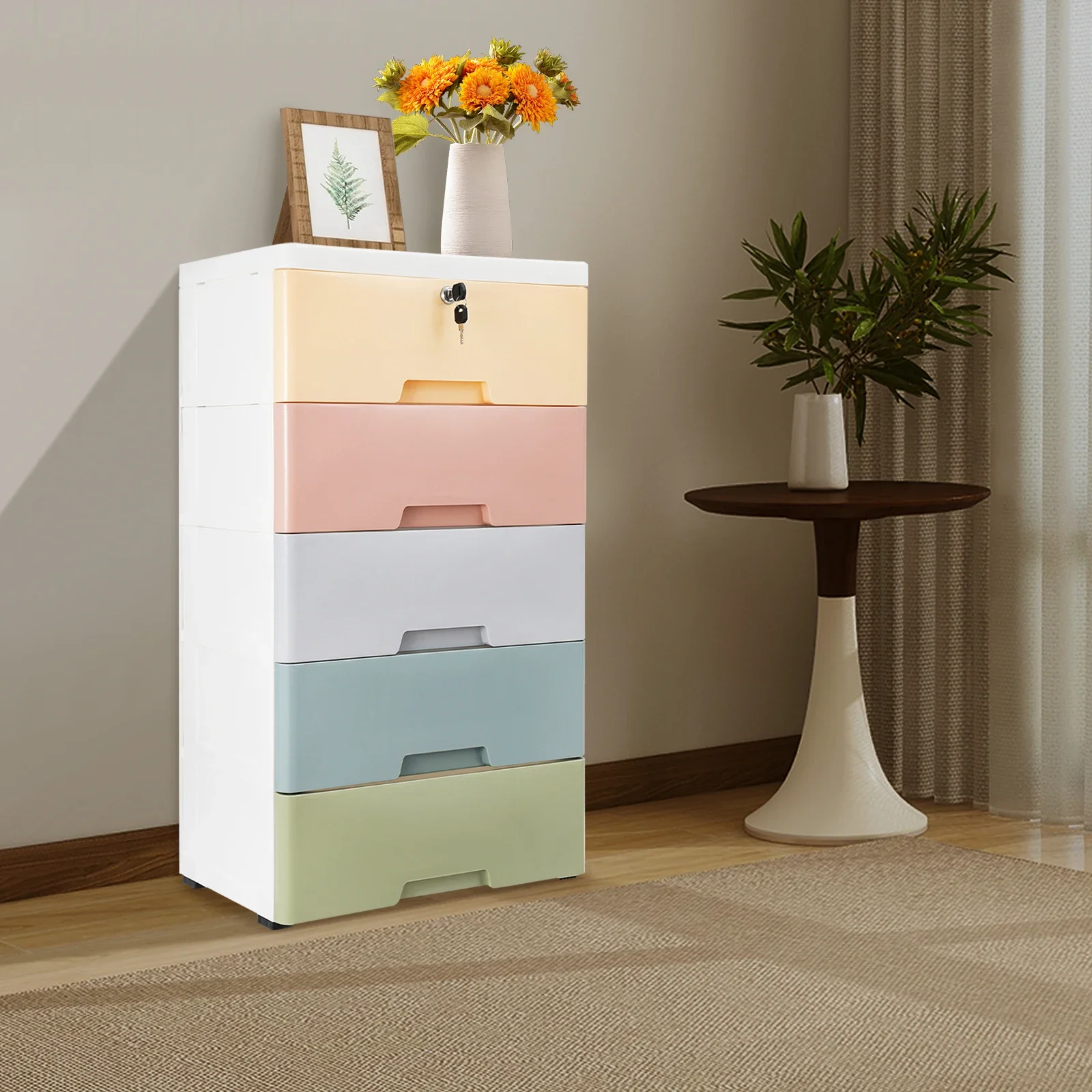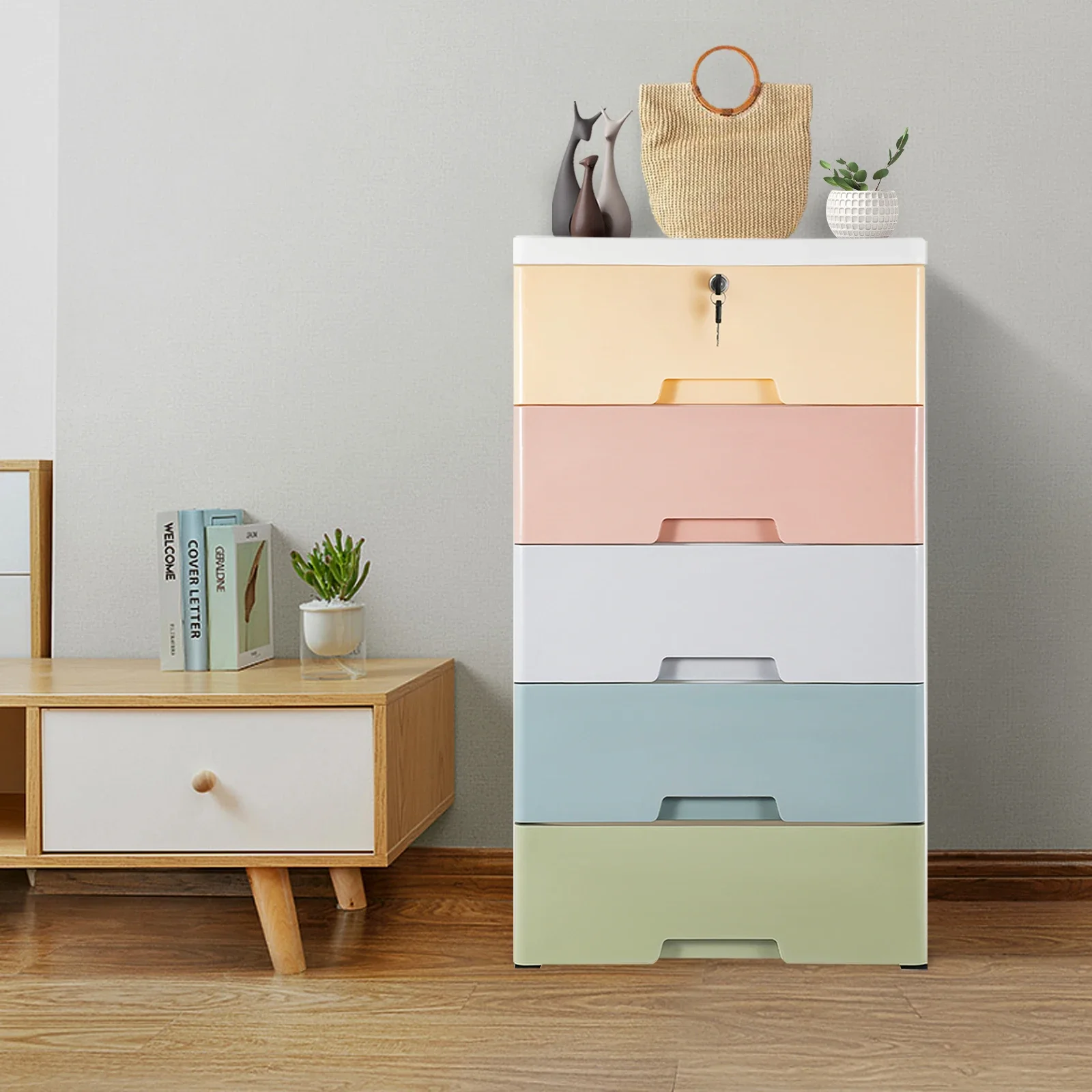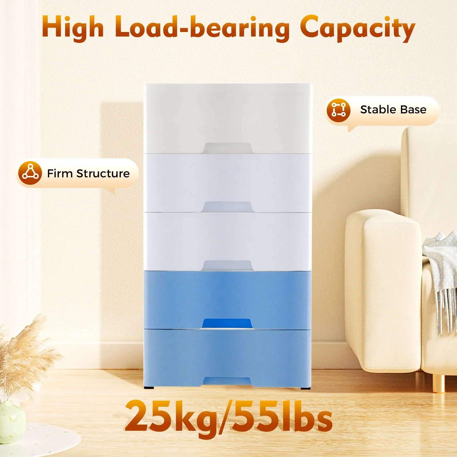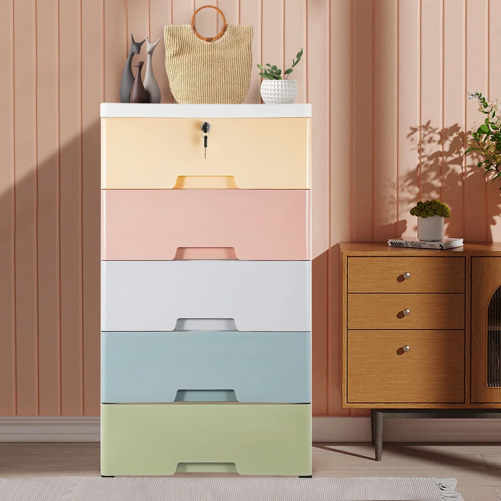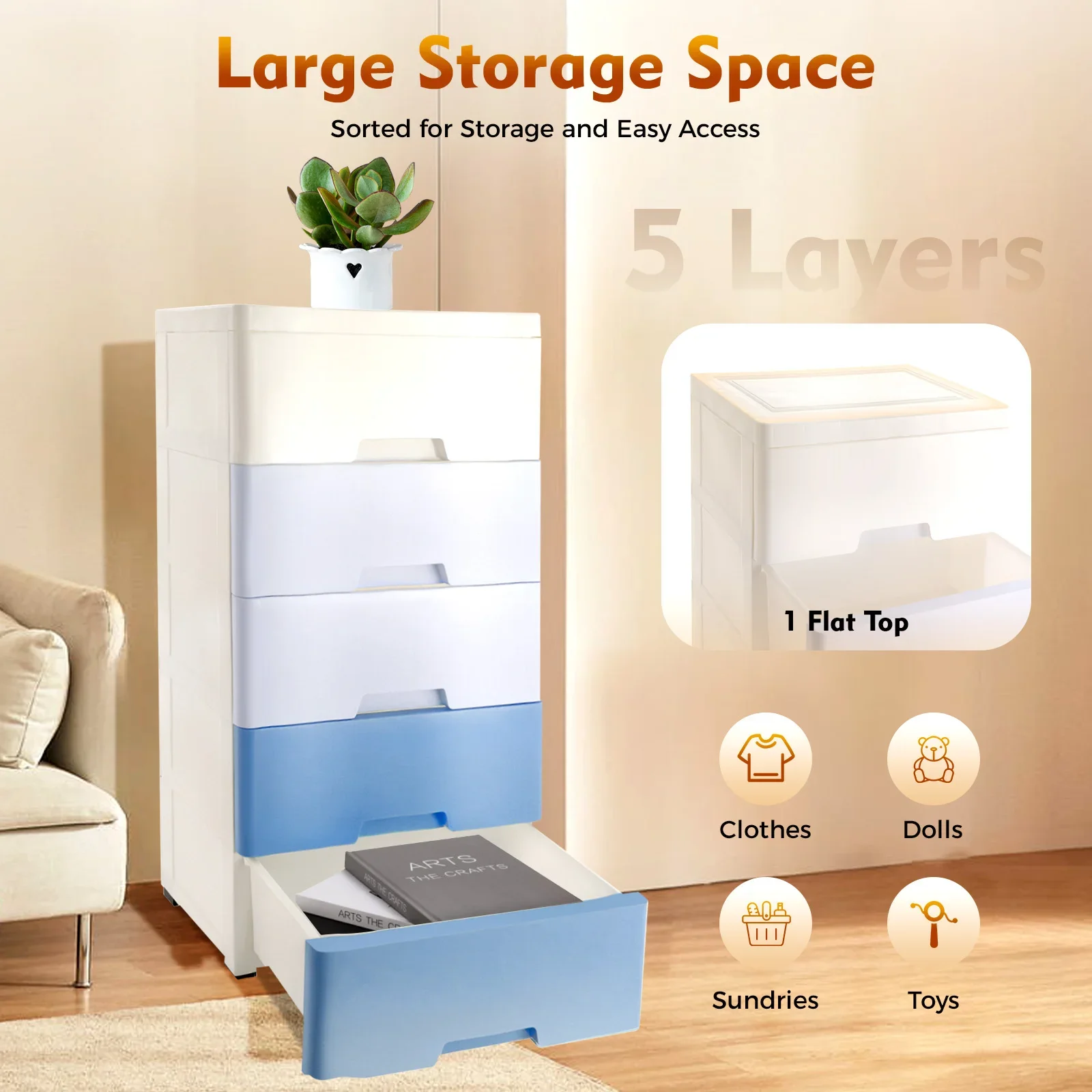 [5-Drawer Plastic Storage Cabinet] 5-Drawer PP Plastic Storage Cabinet - Stackable Vertical for Bedroom Hallway - Organizer Unit