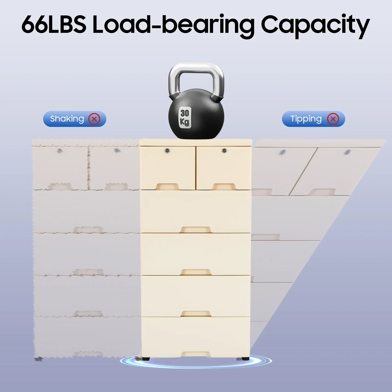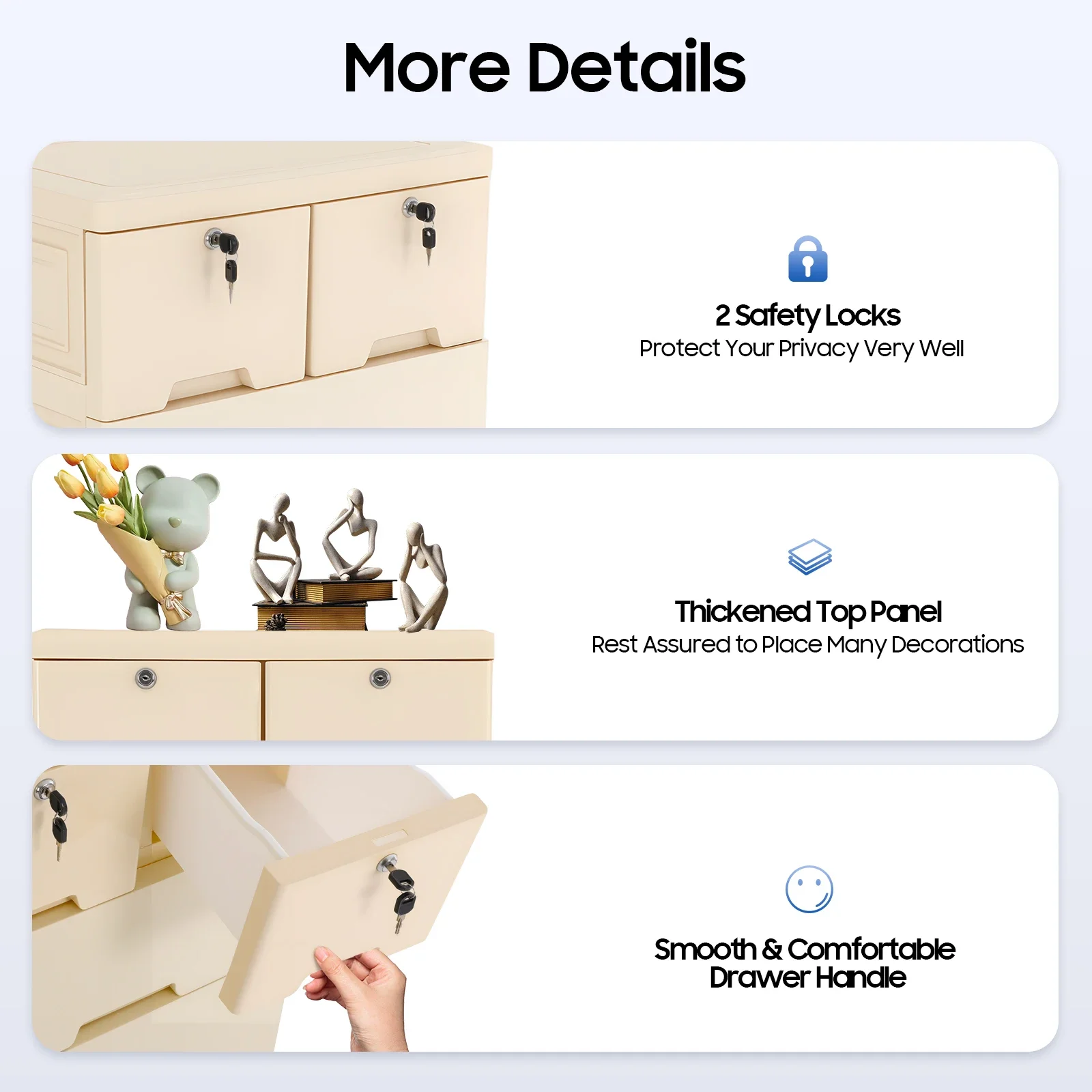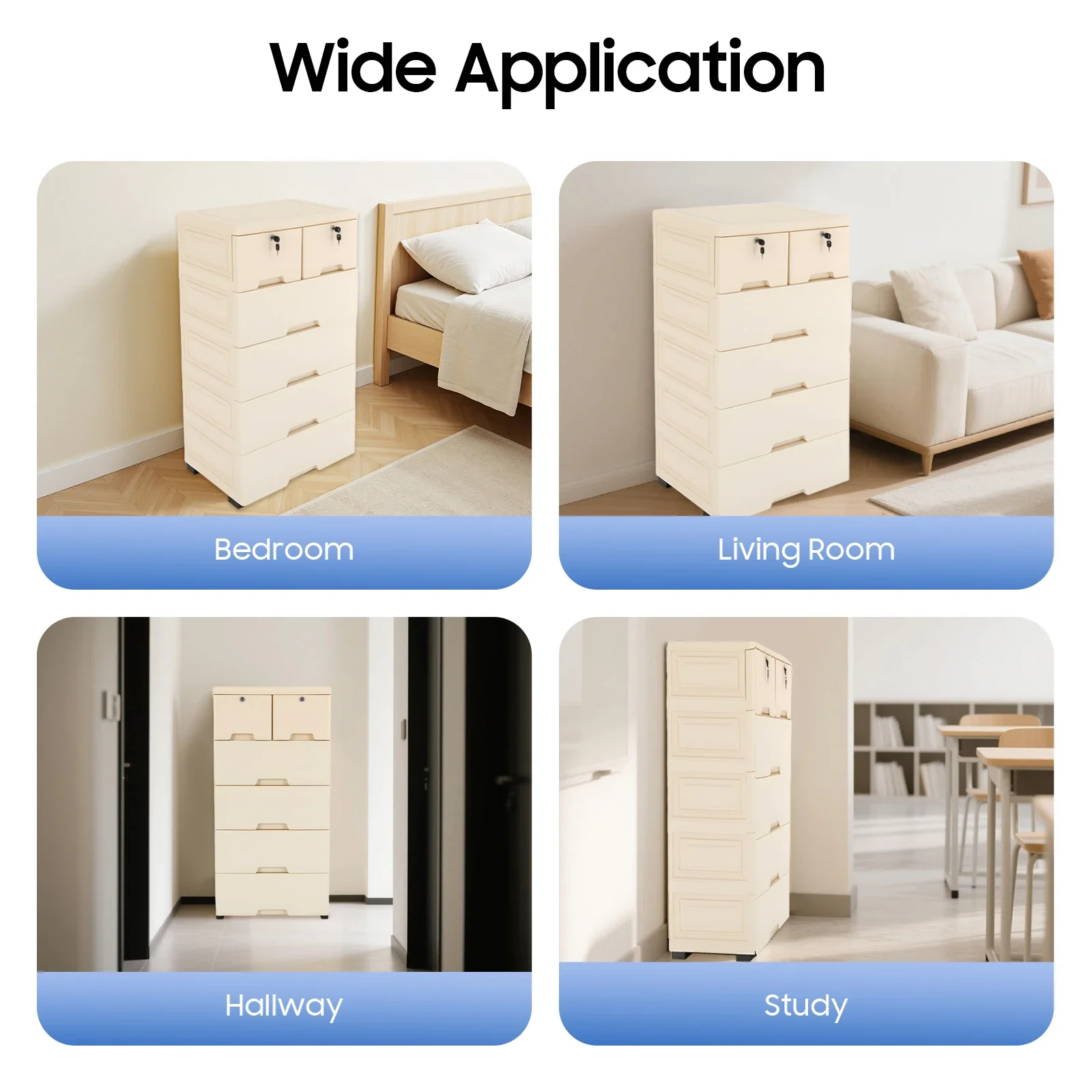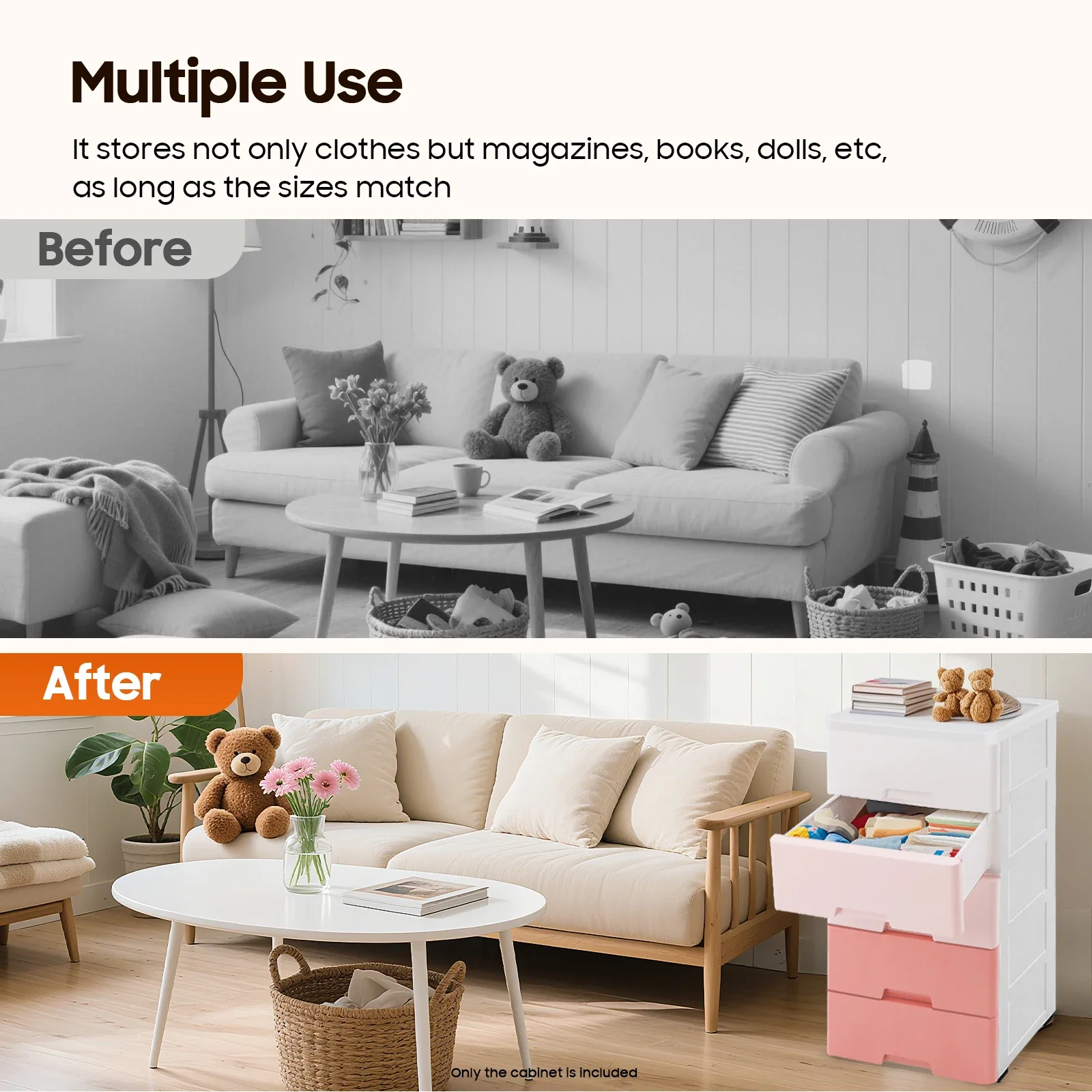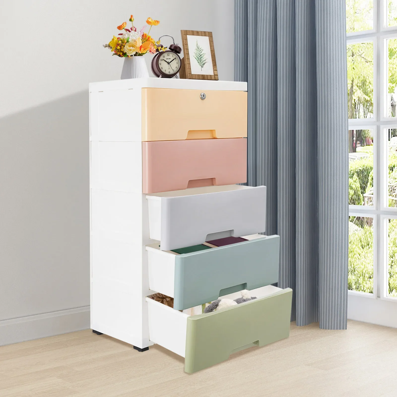 [5-Drawer Plastic Storage Cabinet] 5-Drawer PP Plastic Storage Cabinet - Stackable Vertical for Bedroom Hallway - Organizer Unit