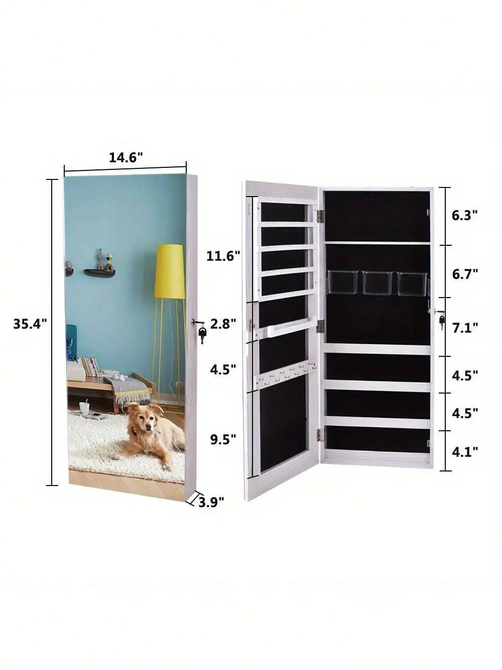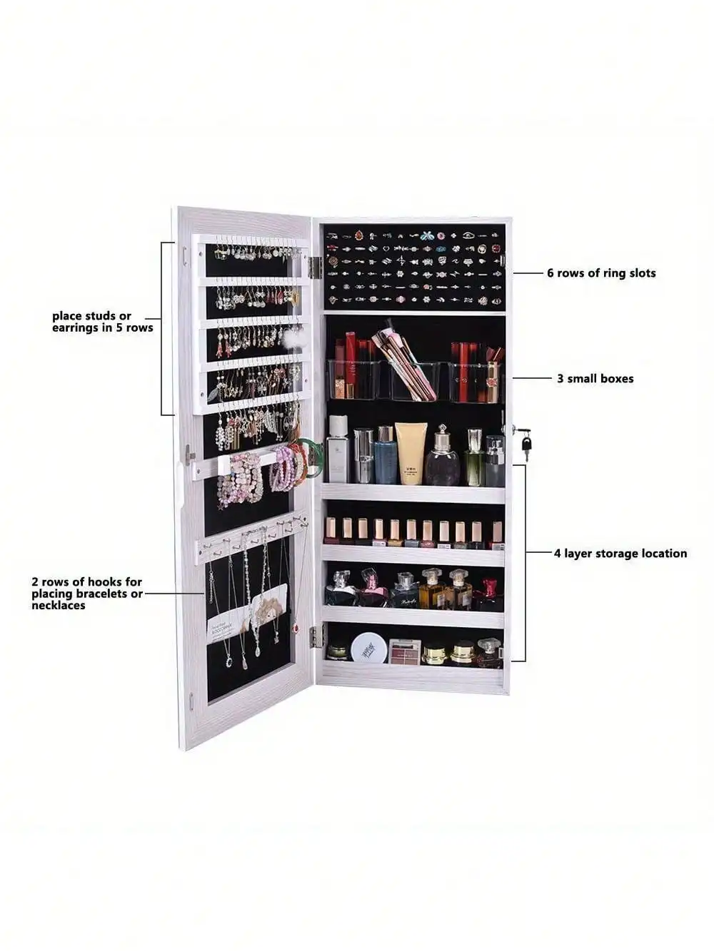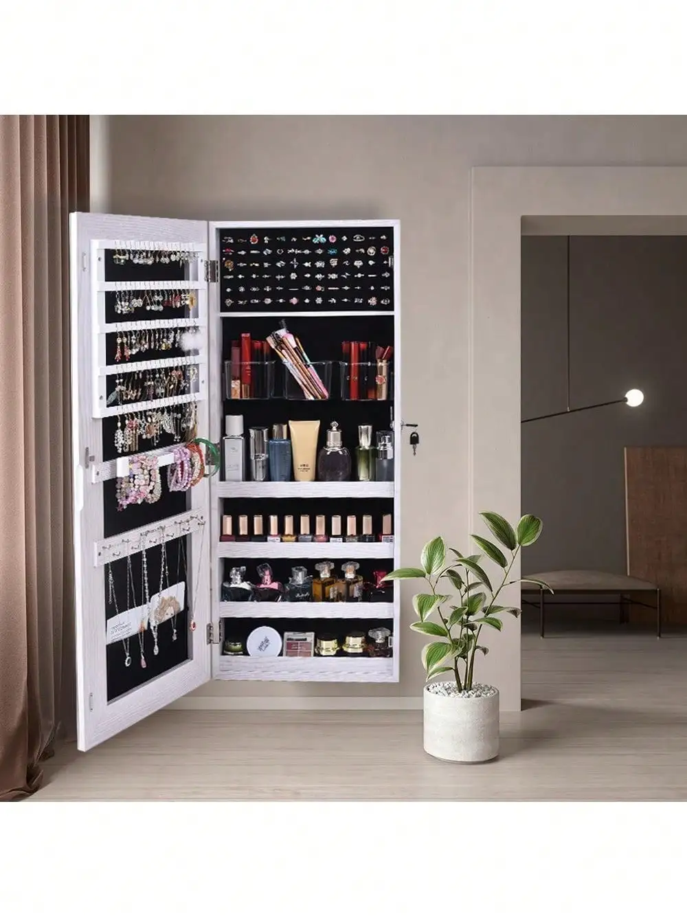 New Wall/Door Mounted Full Mirrored Jewelry Holder Organizer Cabinet Armoire
