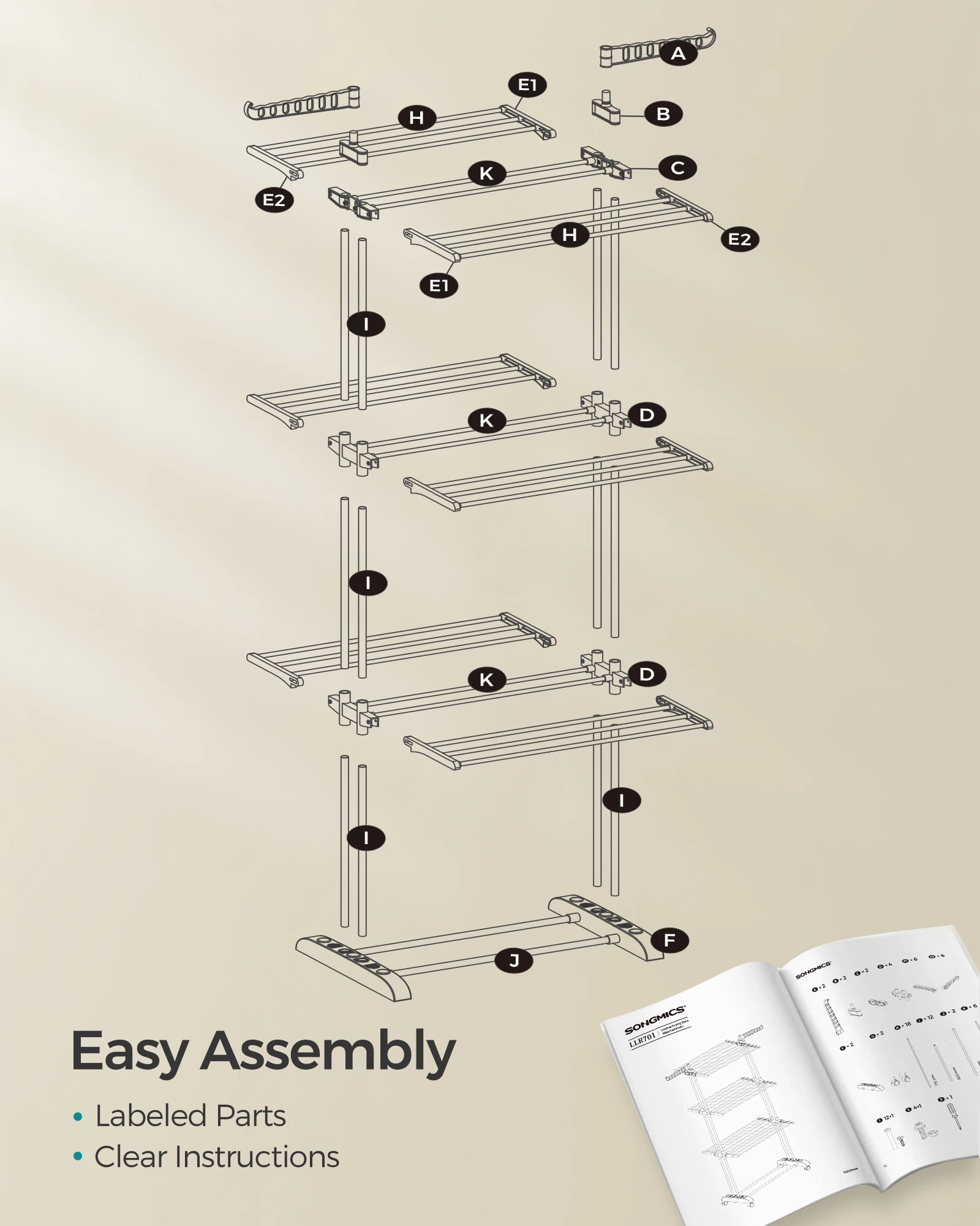[Hassle-Free Assembly] Don't sweat the setup. Our clear instructions and labeled parts will guide you to have your clothes drying rack ready in just 10 minutes