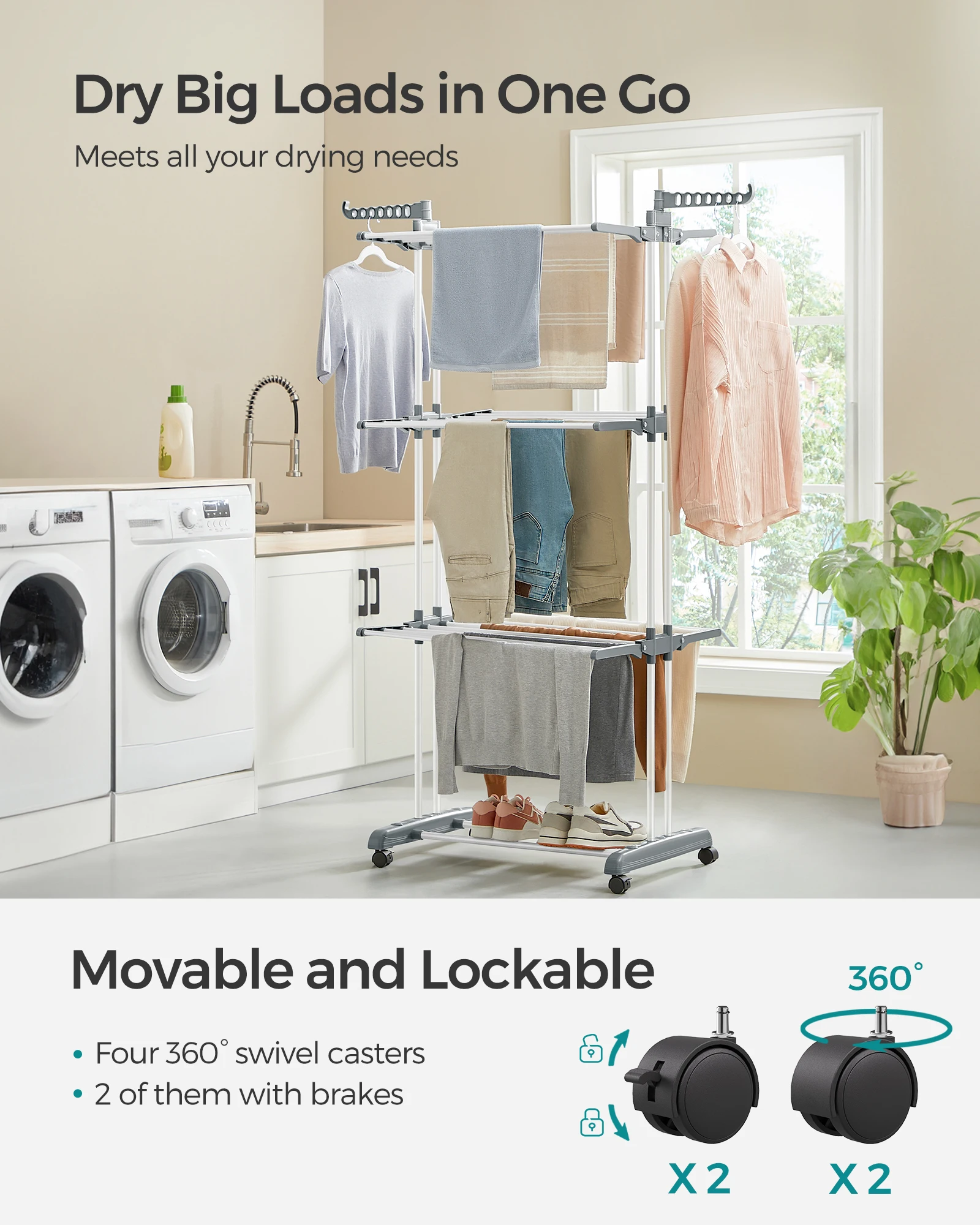 [Easy to Move, Easier to Secure] With 4 casters, our large laundry rack is a breeze to relocate. And when you want it to stay put? The brakes on two of the casters ensure it does just that