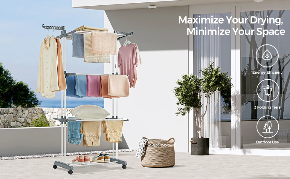 [Versatile Use] Perfect for indoor or outdoor use. Whether use it on your balcony, in your yard, laundry room, or corridor, this laundry rack fits right in. And when it's not in use, simply fold it up for easy storage