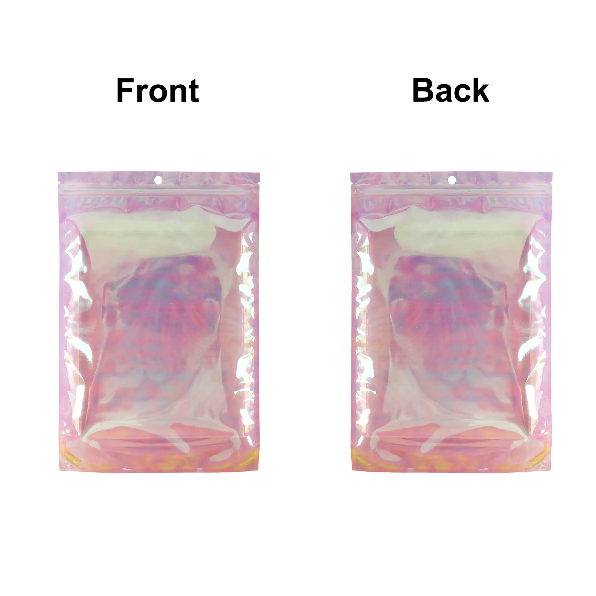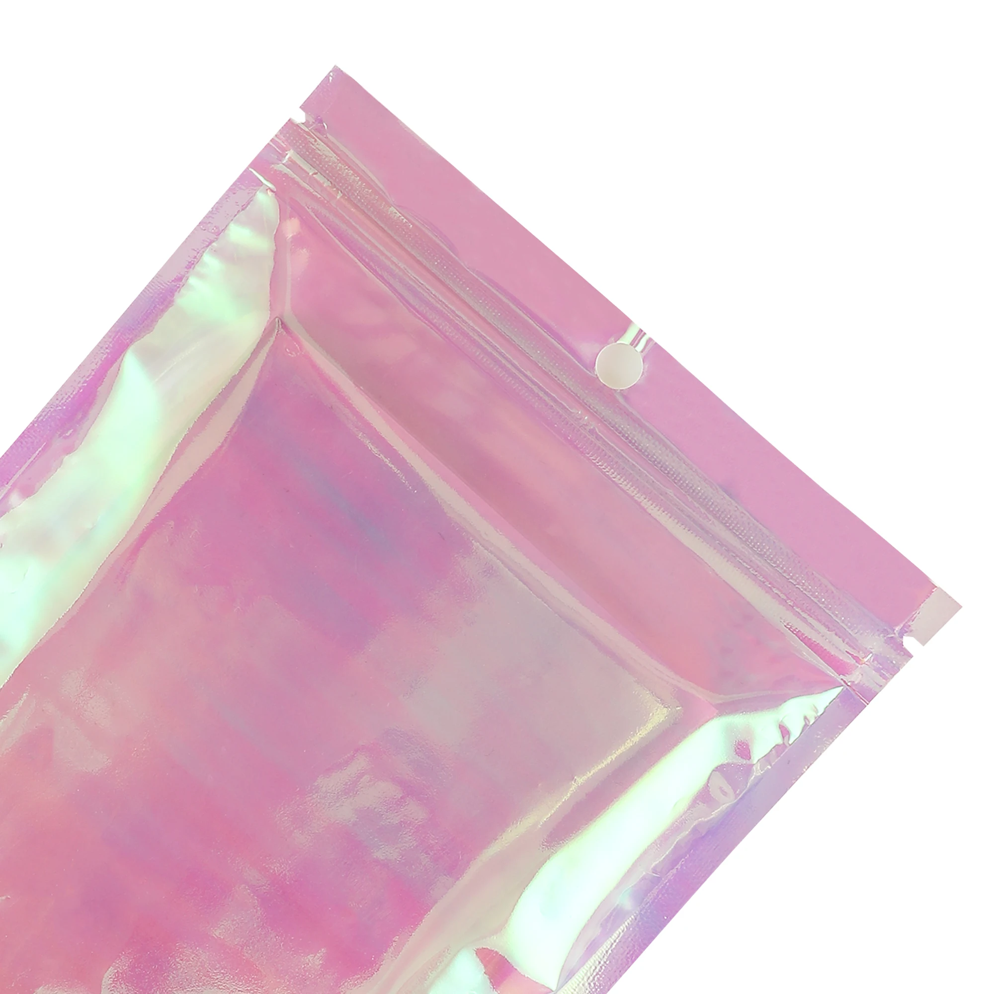 Eco-Friendly Clear Mylar Bag,Holographic Pink Plastic Storage Bag,Reusable Smell Proof Zipper Pouches,Cosmetic Organizer Pouches