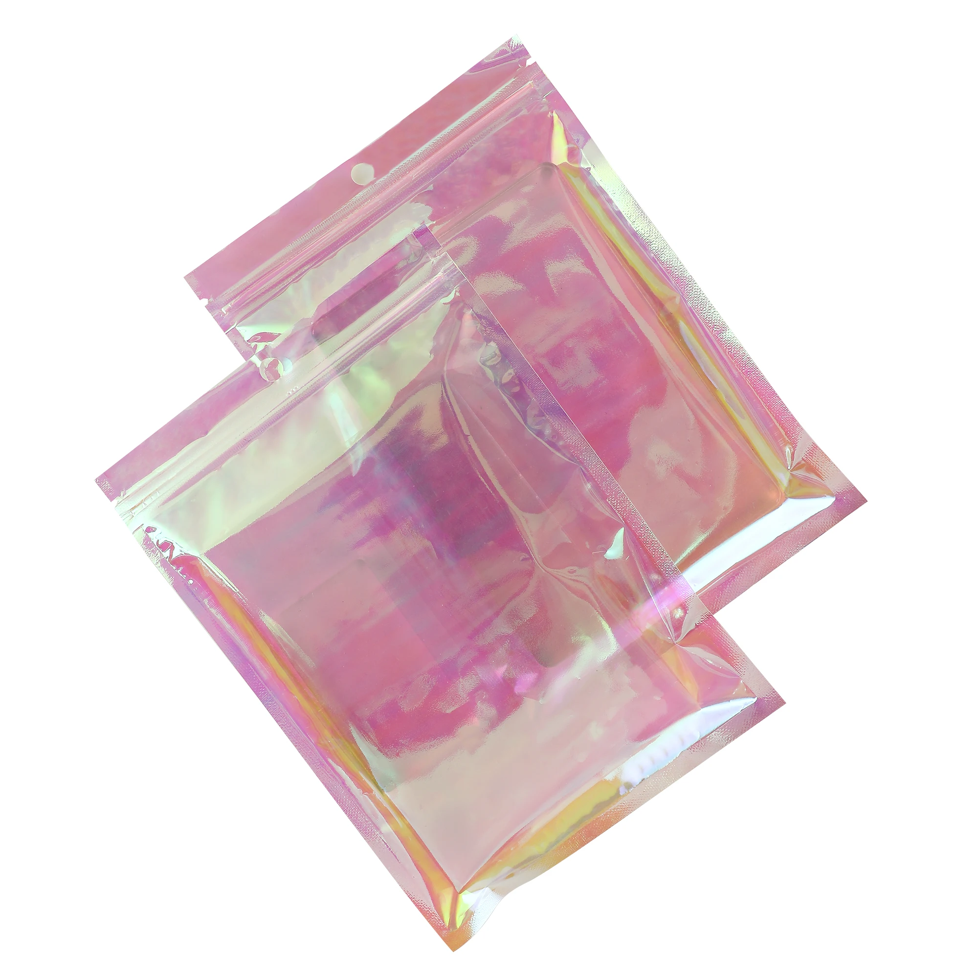 Eco-friendly Clear Mylar Bag Holographic Pink Plastic Storage Bag Reusable Smell Proof Zipper Pouches Cosmetic Organizer Pouches