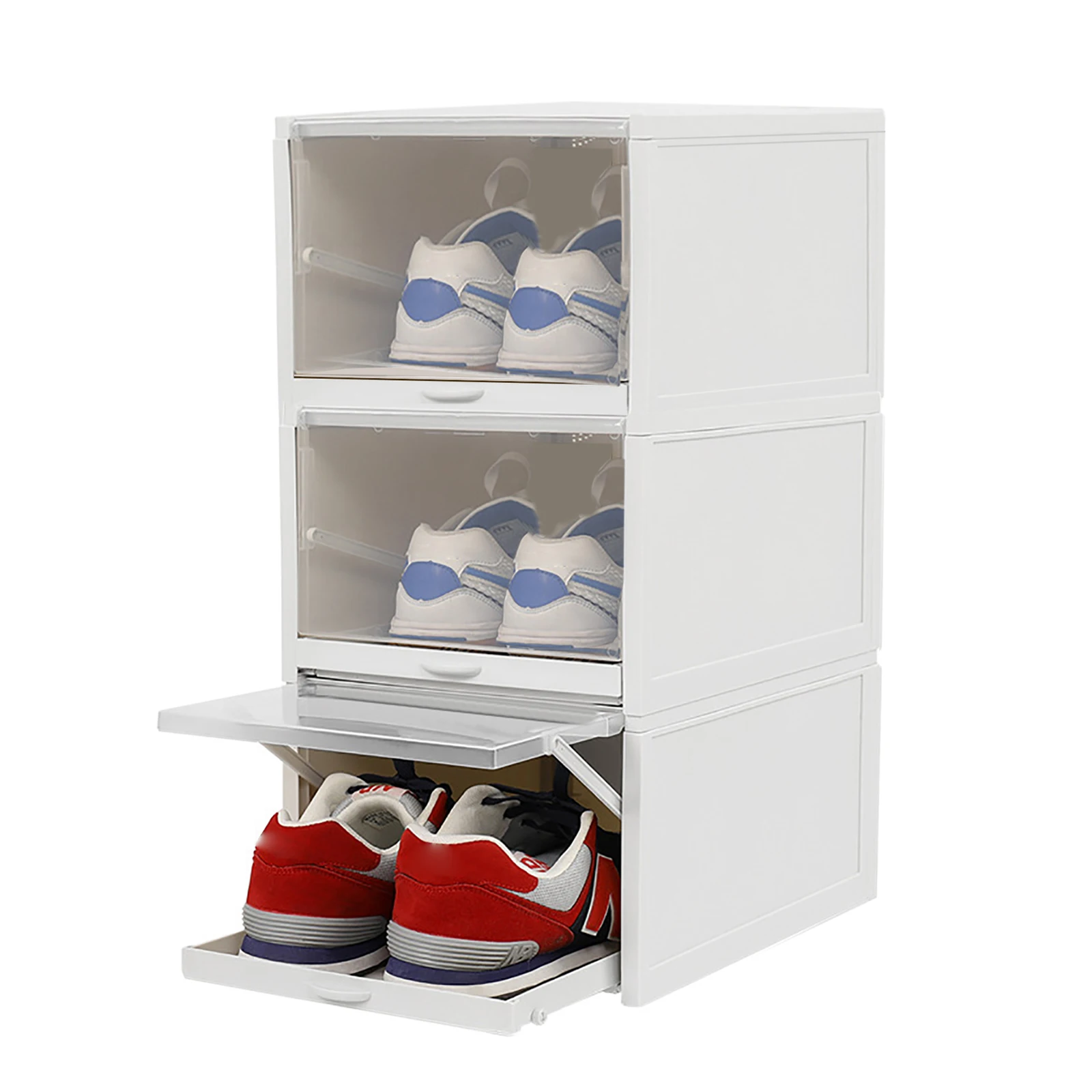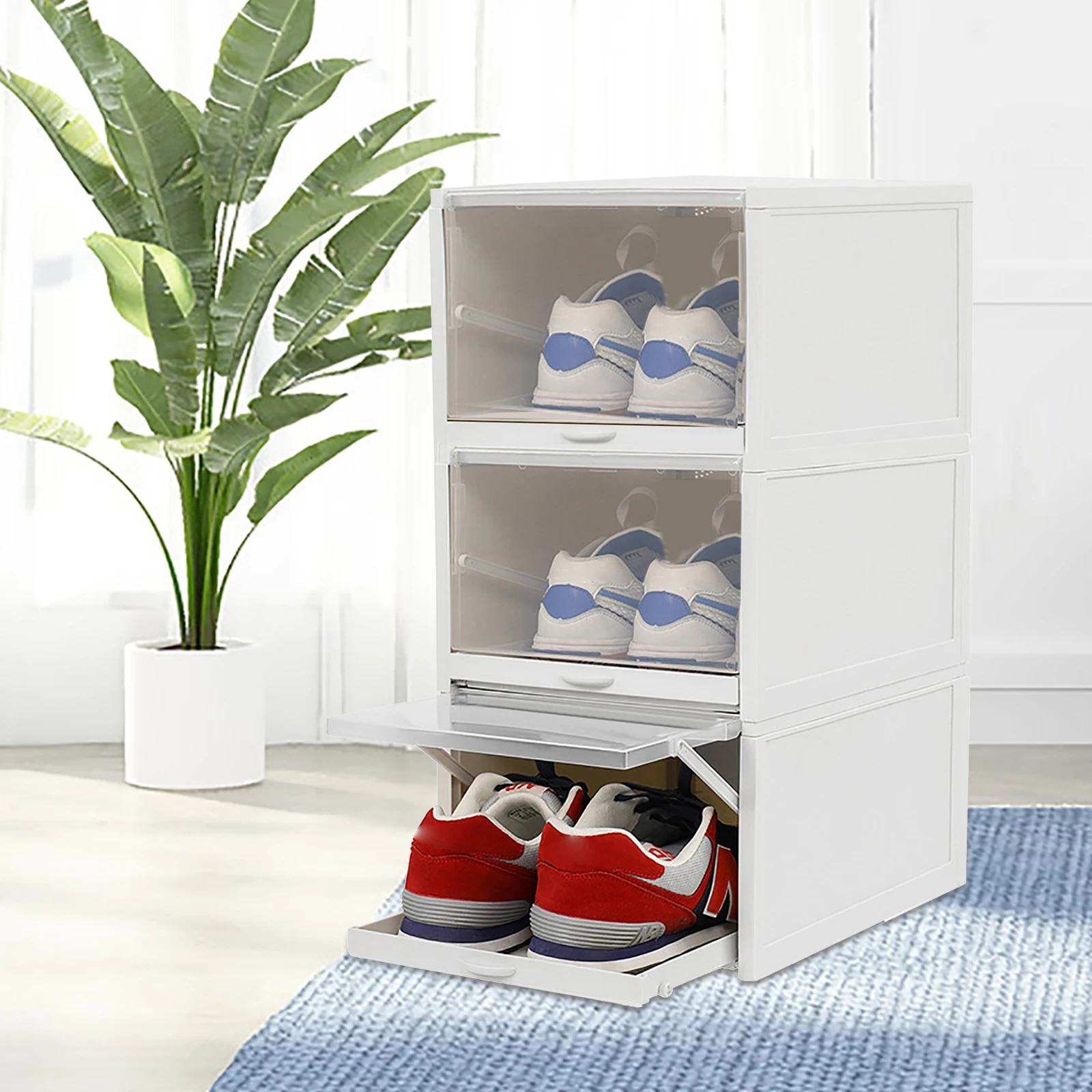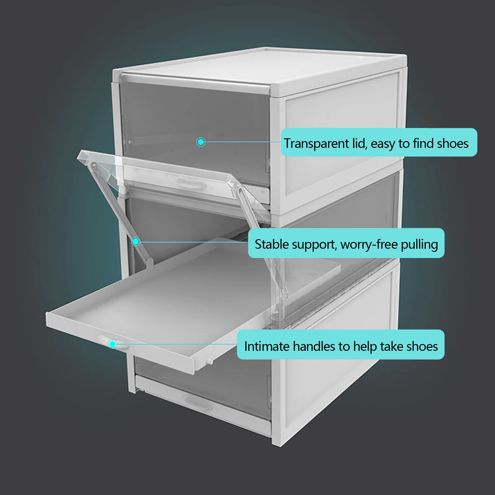 3Pcs Stackable Shoe Box Push Drawer Storage Organizer Shoe Box Clear Cover Gray