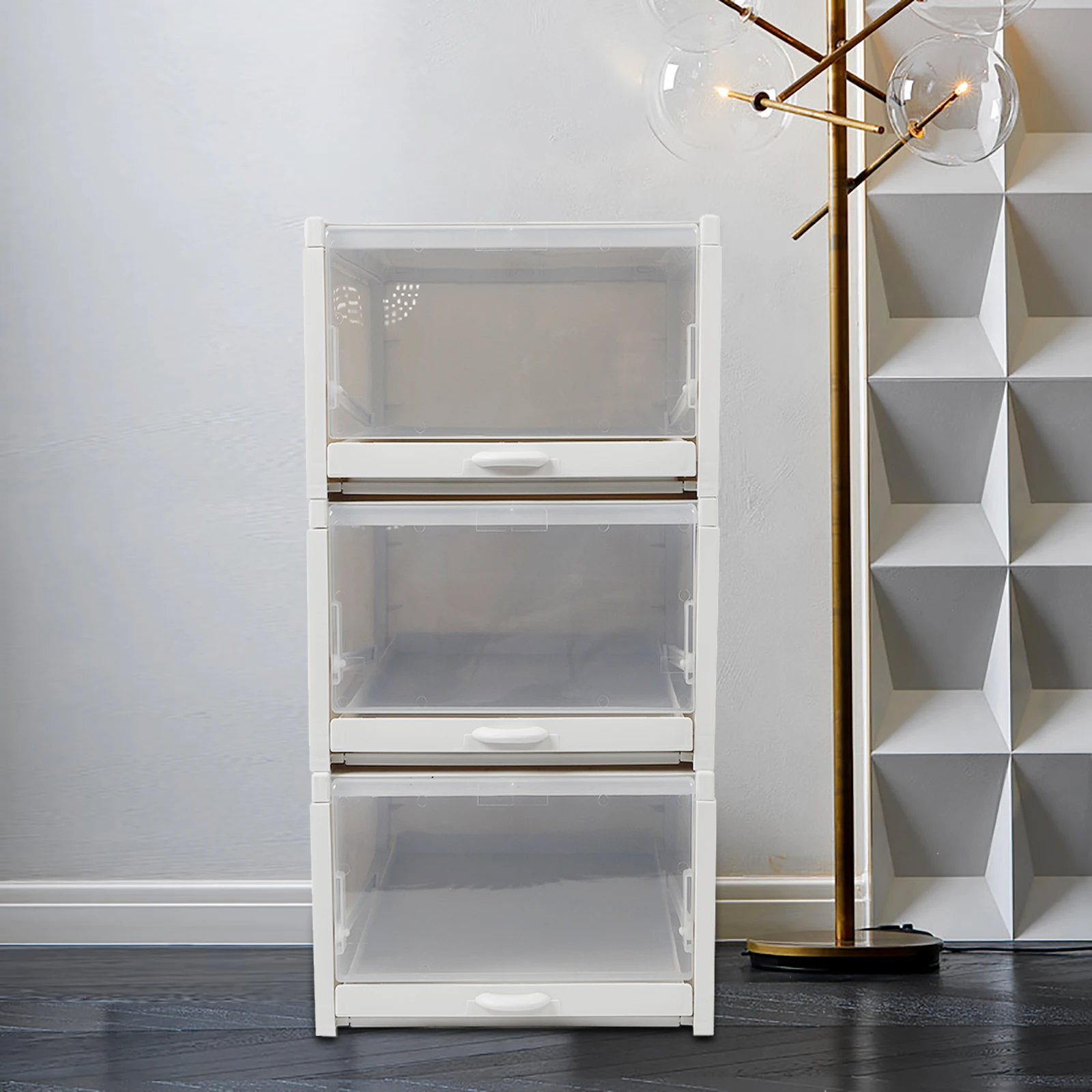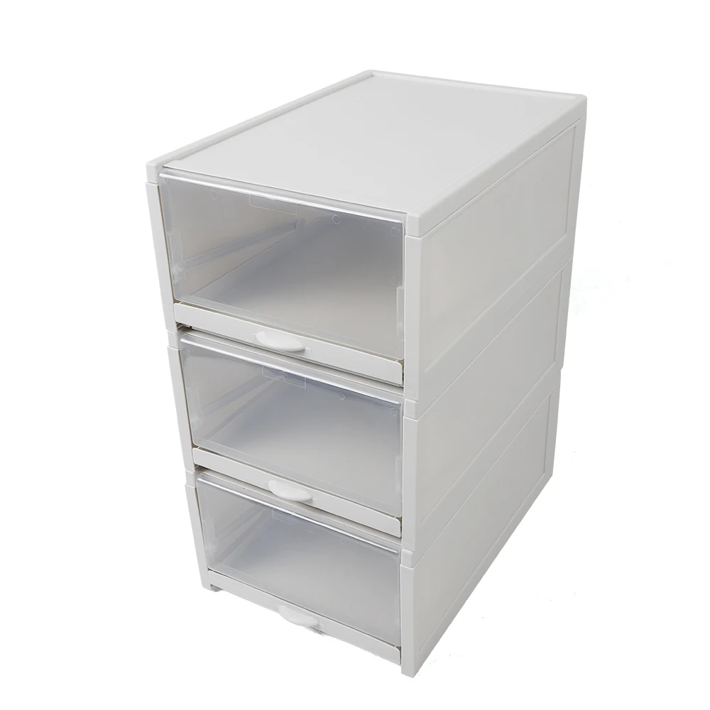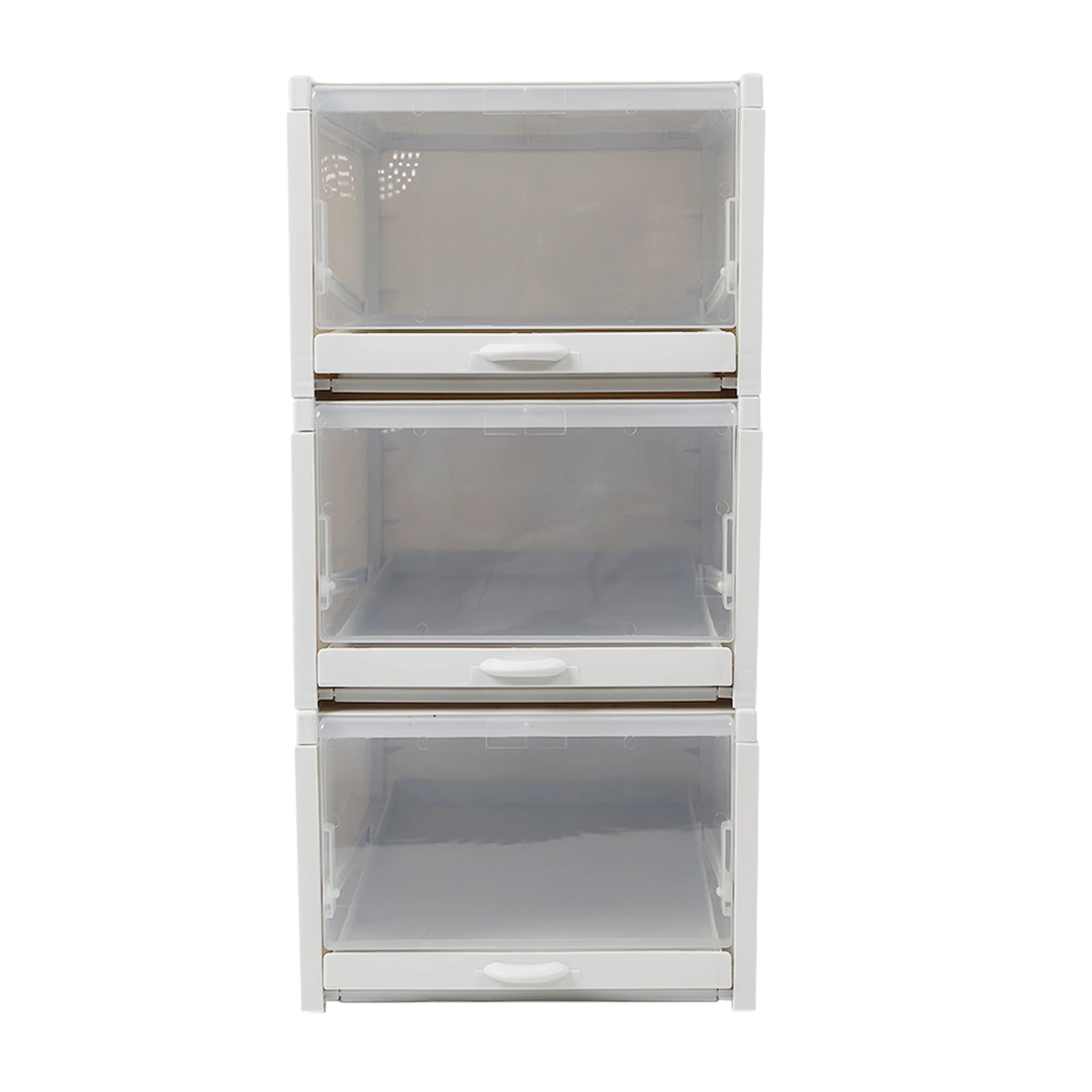 3Pcs Stackable Shoe Box Push Drawer Storage Organizer Shoe Box Clear Cover Gray