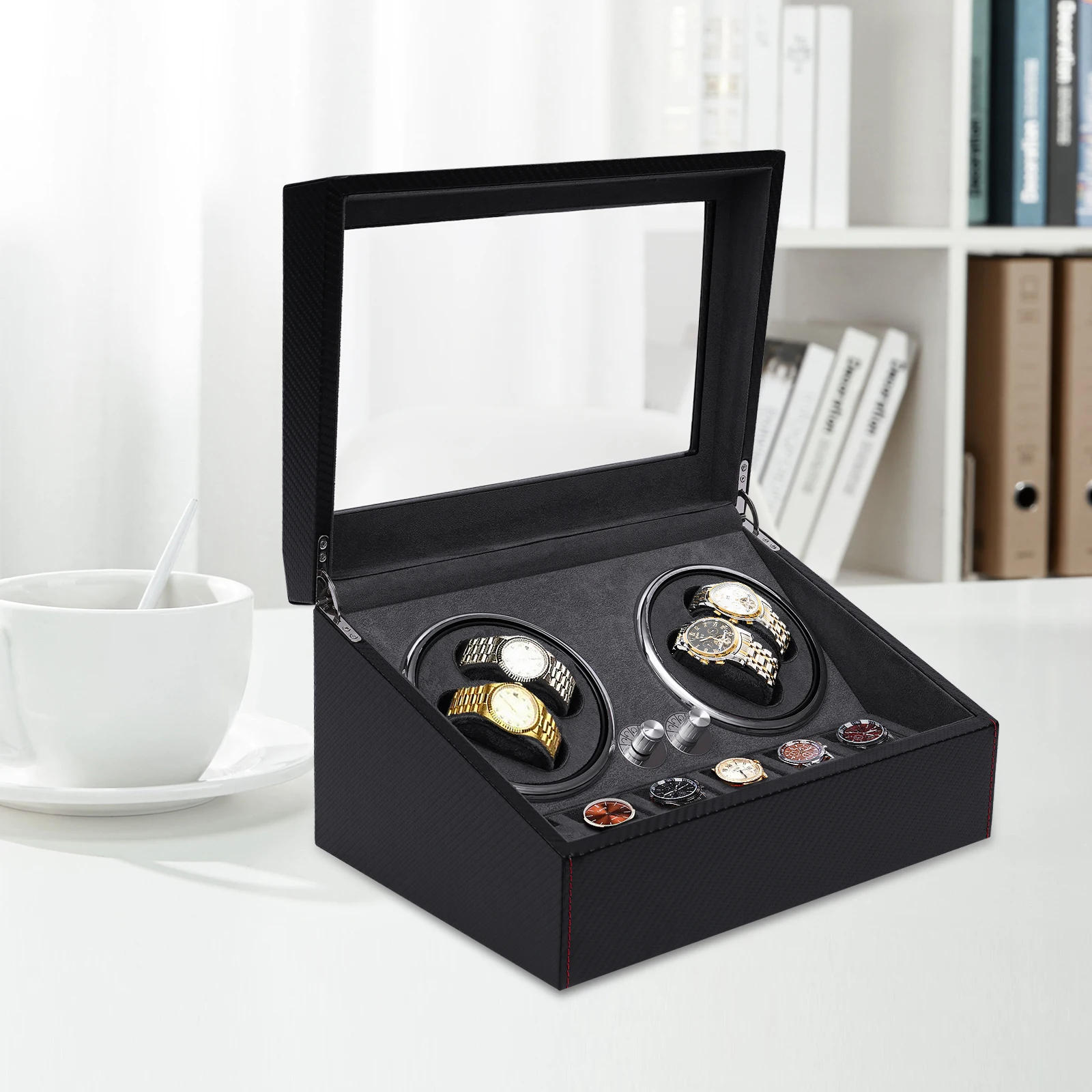 Watch Winder for 4 Automatic Watches, with Extra 6 Watch Storages, LED Illumination, Silent Motor, Flexible Watch Pillow