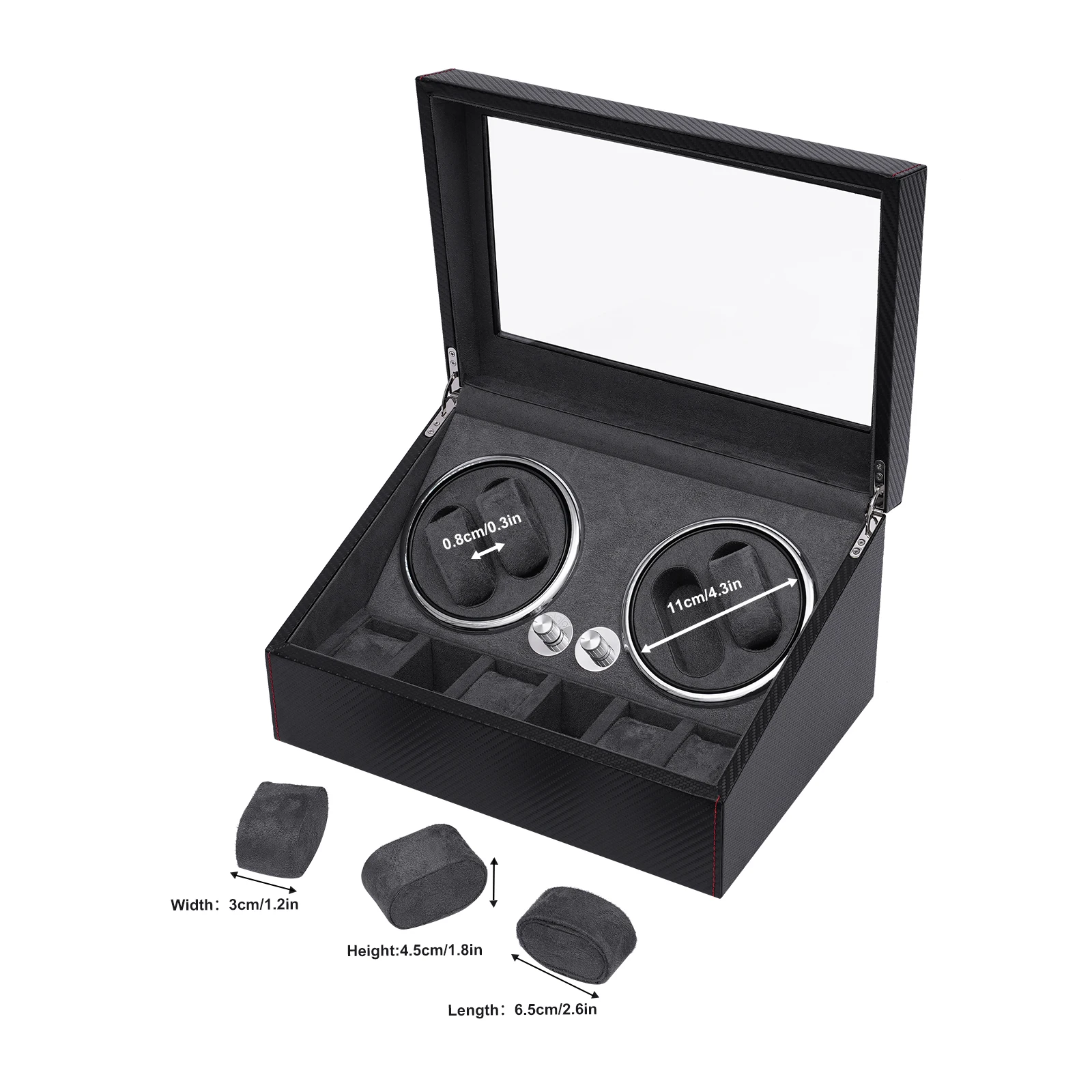 Large Storage Space ---- This watch winder has box 4 winder spaces and 6 storage spaces which are ideal for people with a lot of watches and for storing family watches.