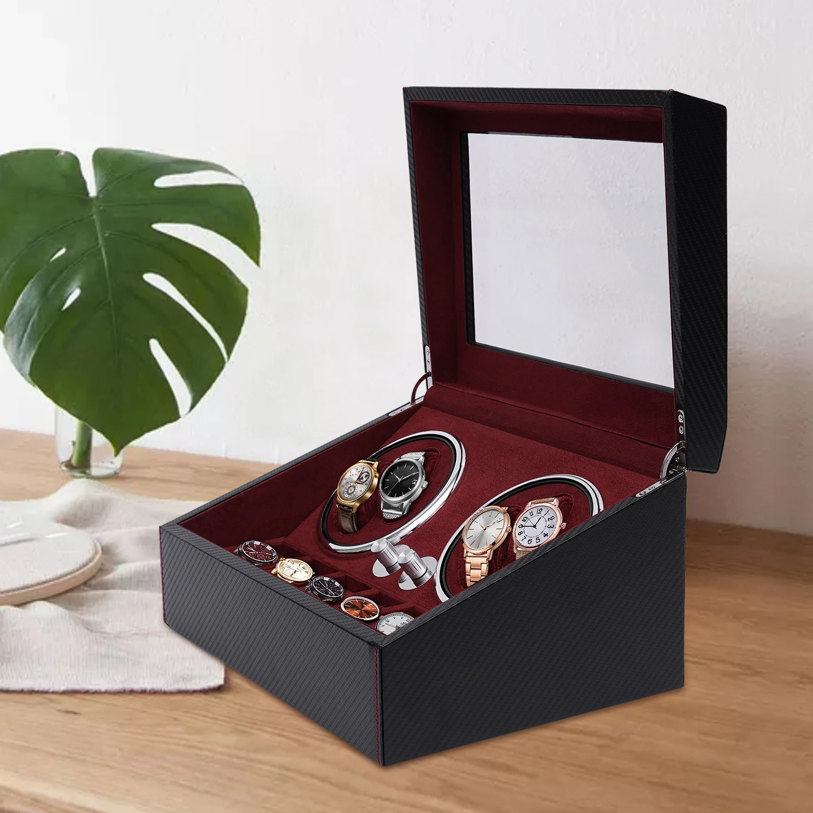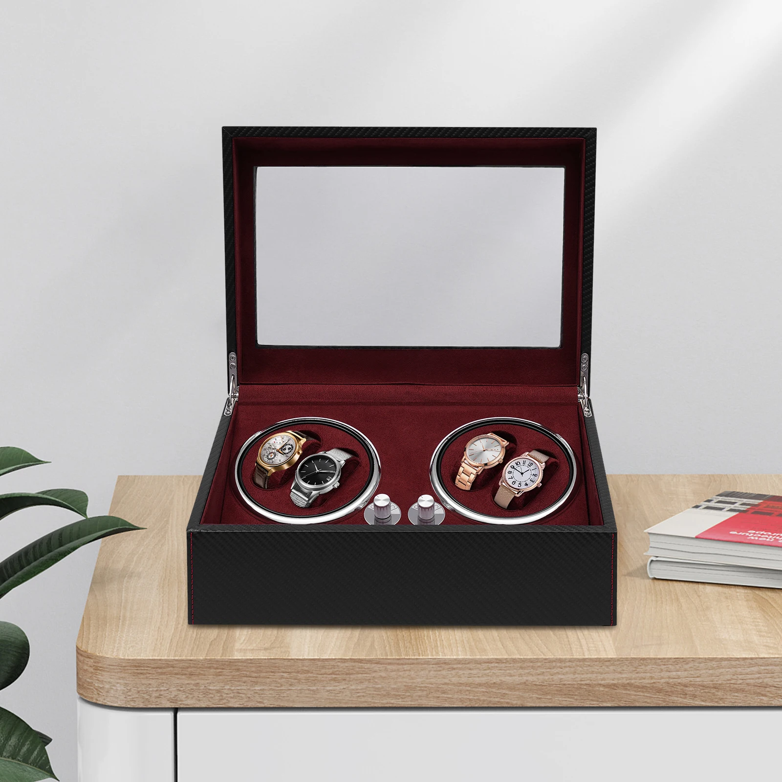 Extremely Quiet ---- This watch winder box is powered by a super quiet motor that produces less running noise. It rotates the watch evenly as if it is silent and does not disturb you.