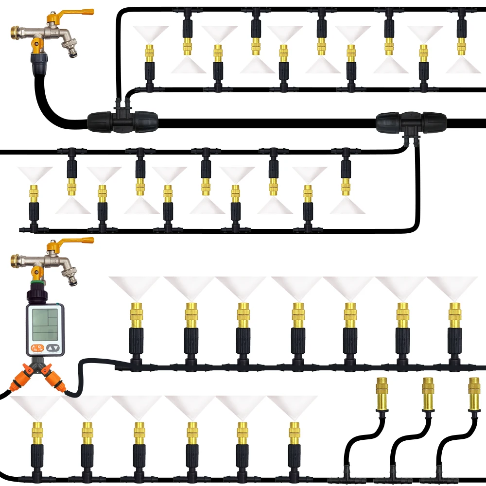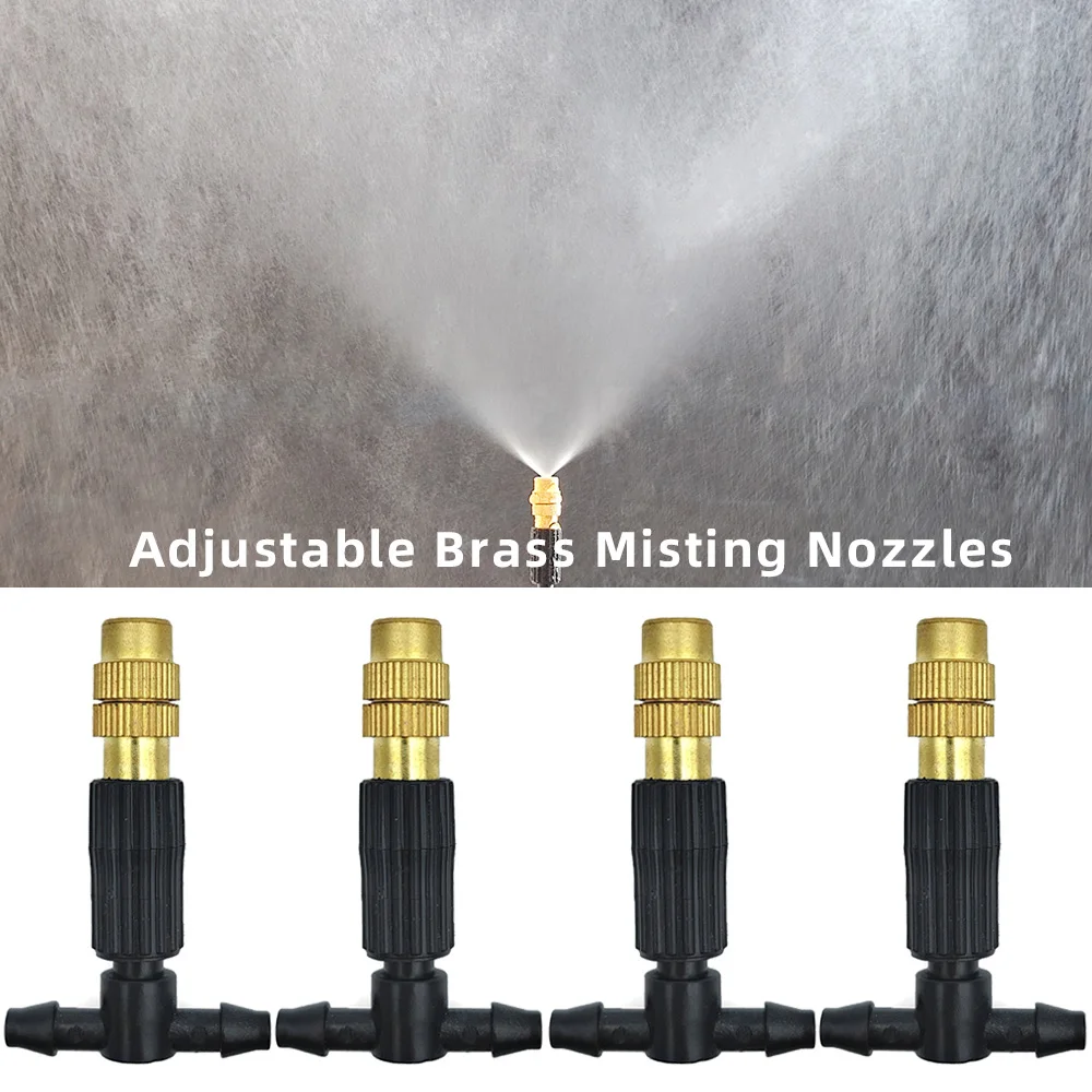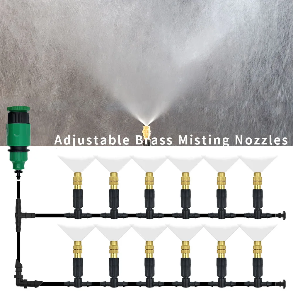 15M-30M Outdoor Misting Cooling System Garden Irrigation Watering 1/4'' Brass Atomizer Nozzles 4/7mm Hose for Patio Greenhouse