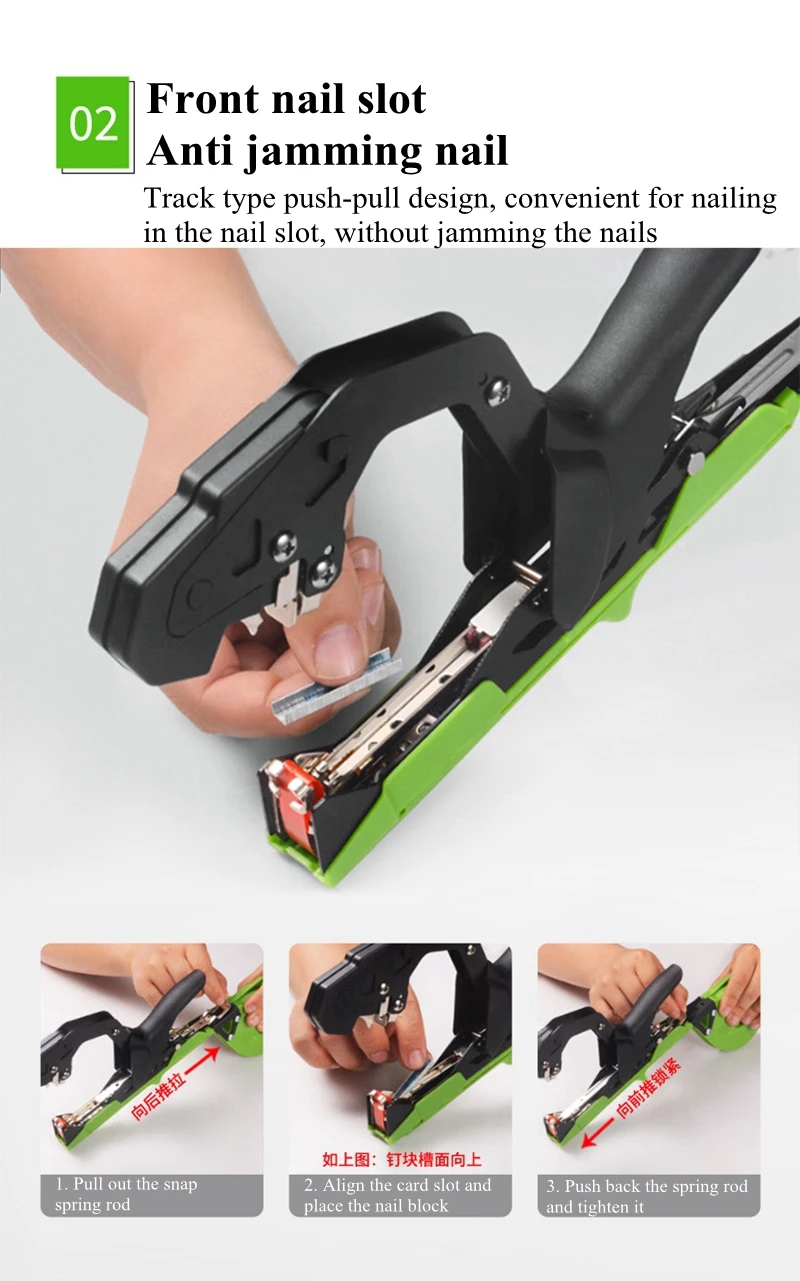 -Front nail slot:Anti jamming nail design for easy and efficient binding