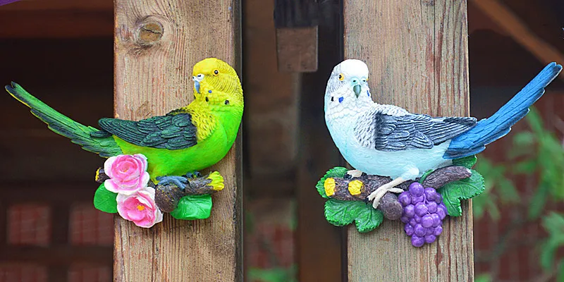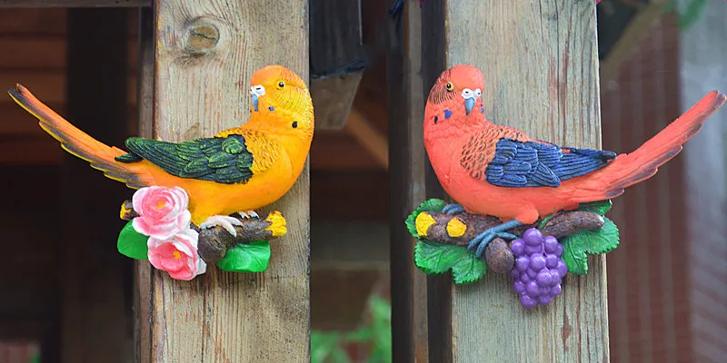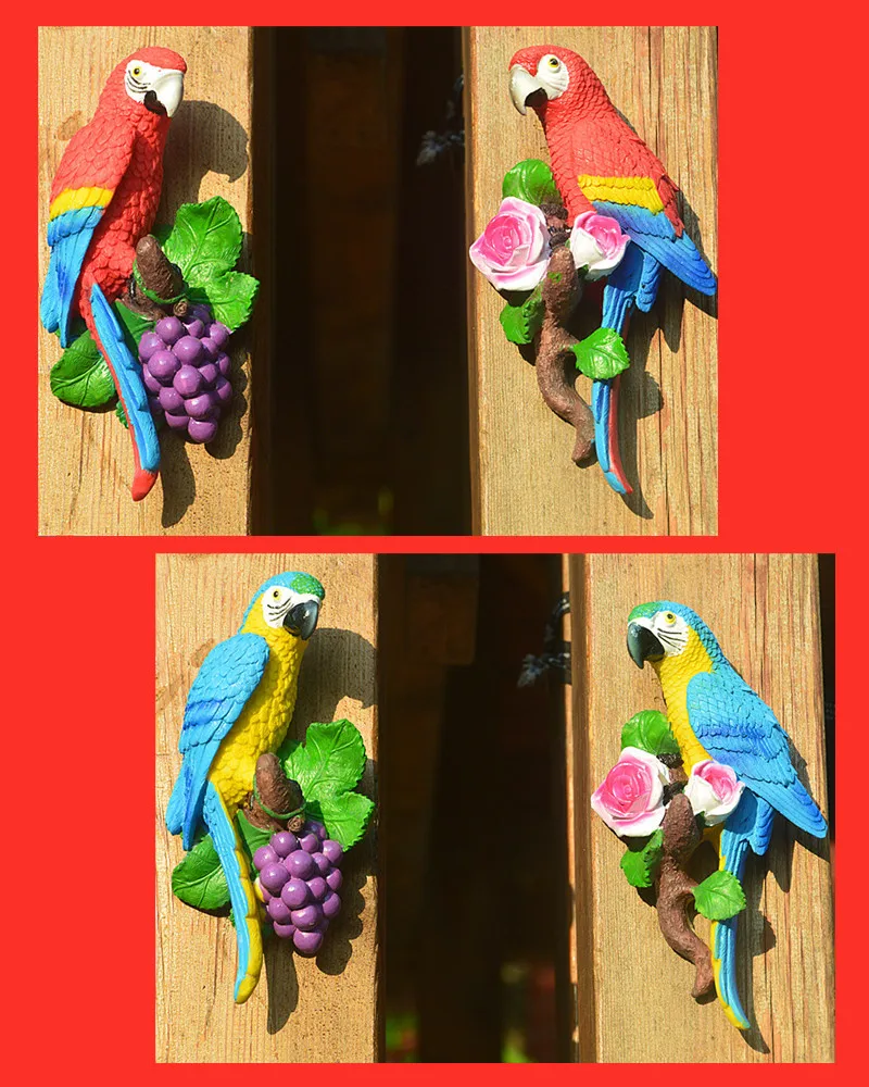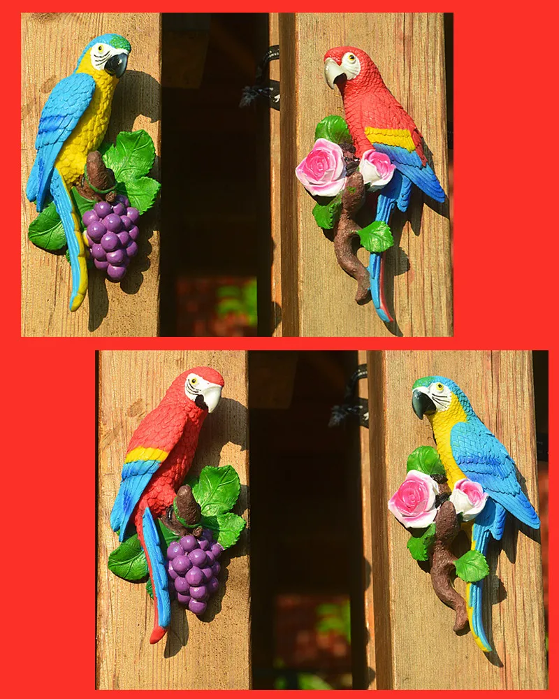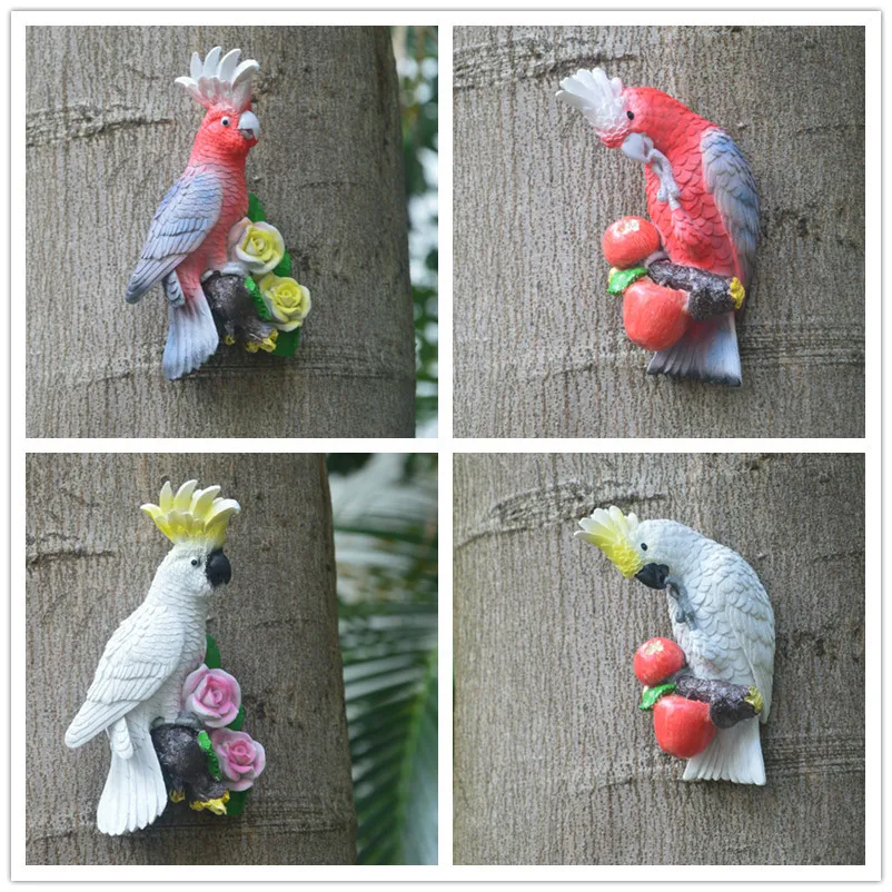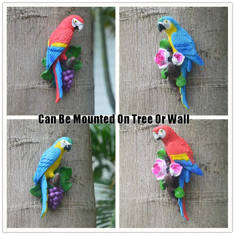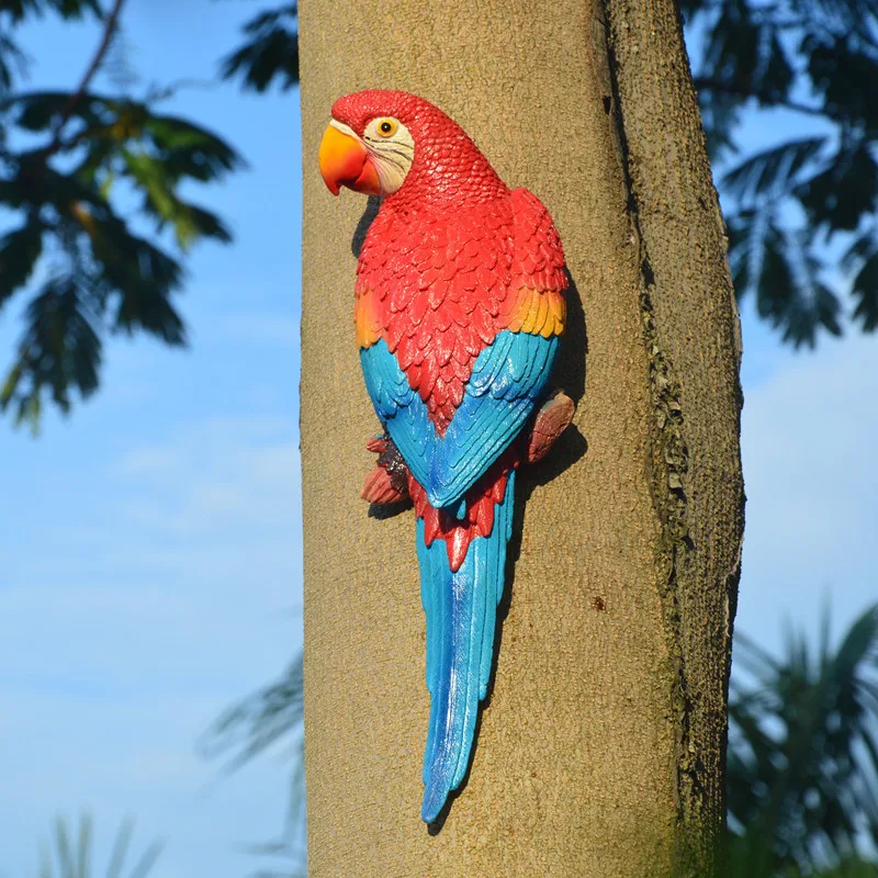 Creative Resin Parrot Wall Tree Mounted Outdoor Garden Decoration Statue Animal Sculpture For Home Office Garden Decor Ornament