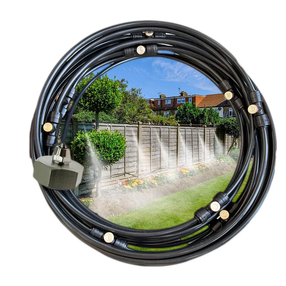 Variety of Applications: The misting system has an extensive applications for your backyard or patio, a spray mister for your garden, greenhouse, kennel, sun umbrella, trampoline, can cover a large area and increase humidity and decrease temperature.