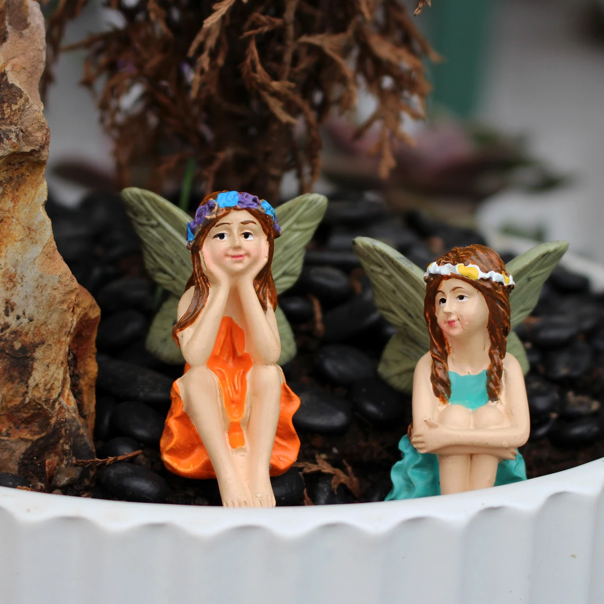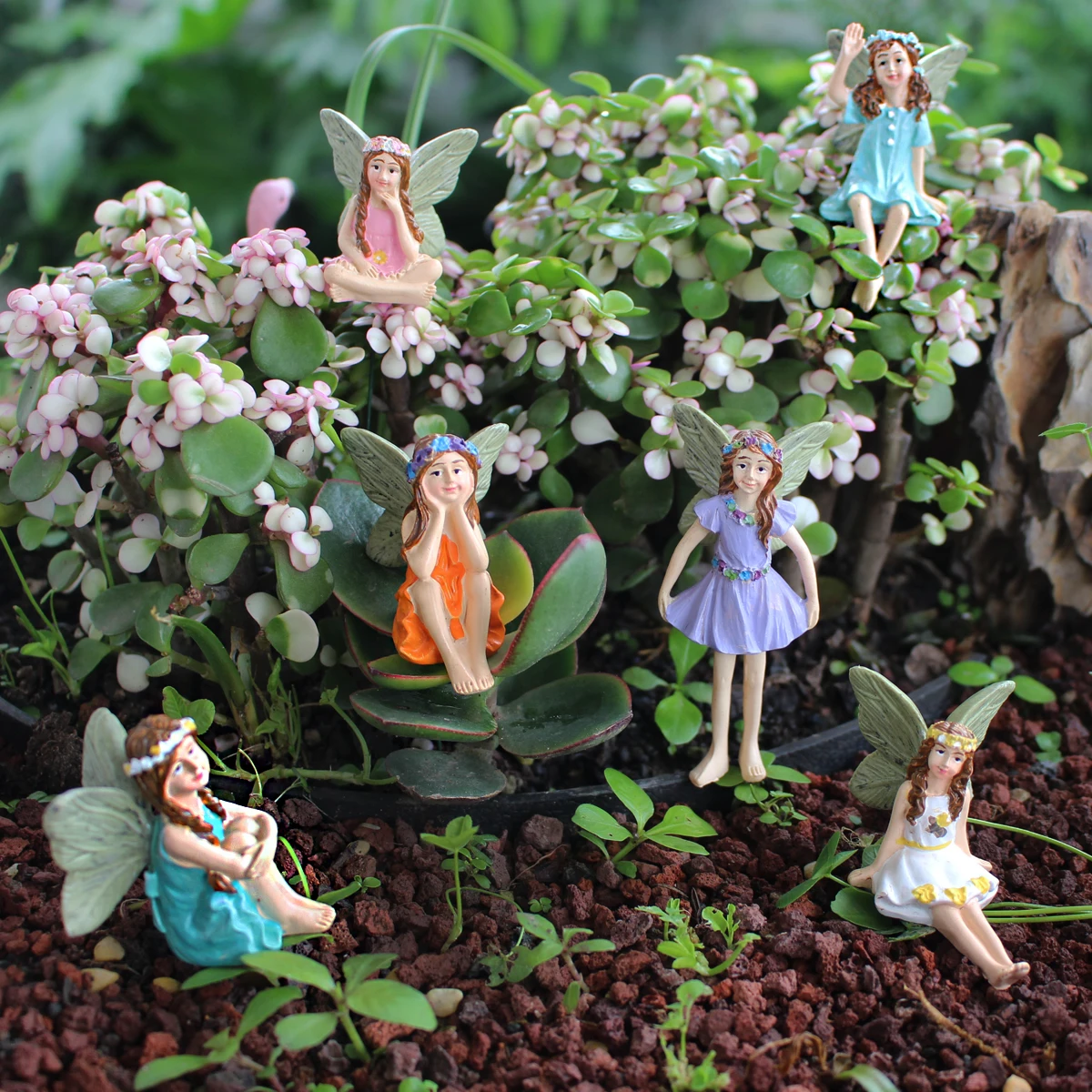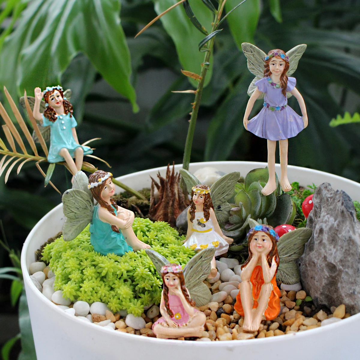 Resin Flower Fairy Set with Six Gardens, Courtyard, Balcony, Flower Pot, Lawn Decoration Suitable for Indoor and Outdoor Use