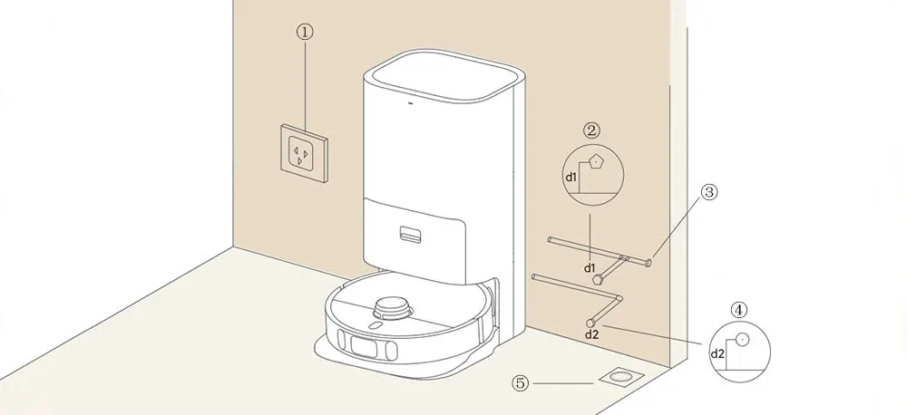 2. It is recommended that the height (d3) from the center of the hole on the wall to the ground should not be higher than 15cm, so as not to affect the appearance, and the diameter of the hole should be 3cm.