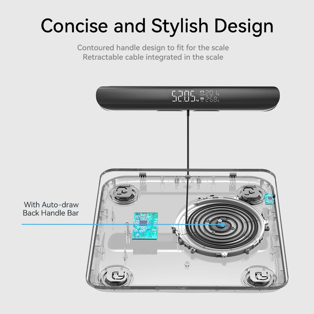 Contoured handle design to fit for the scale Retractable cable integrated in the scale