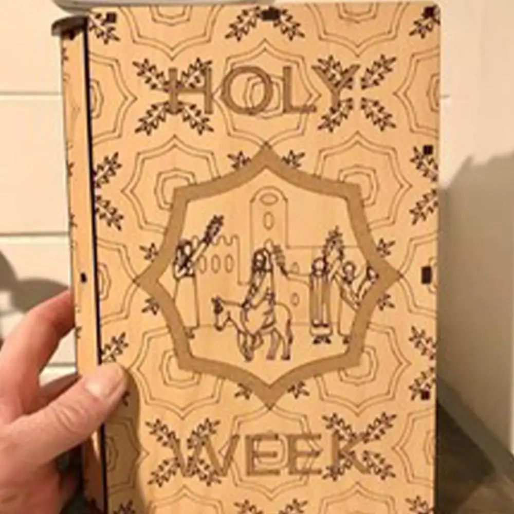 3.Enhance Easter Understanding: Explore the Holy Week narrative through this engaging booklet, with wooden figurines illustrating key scenes and corresponding scriptures for an educational trip