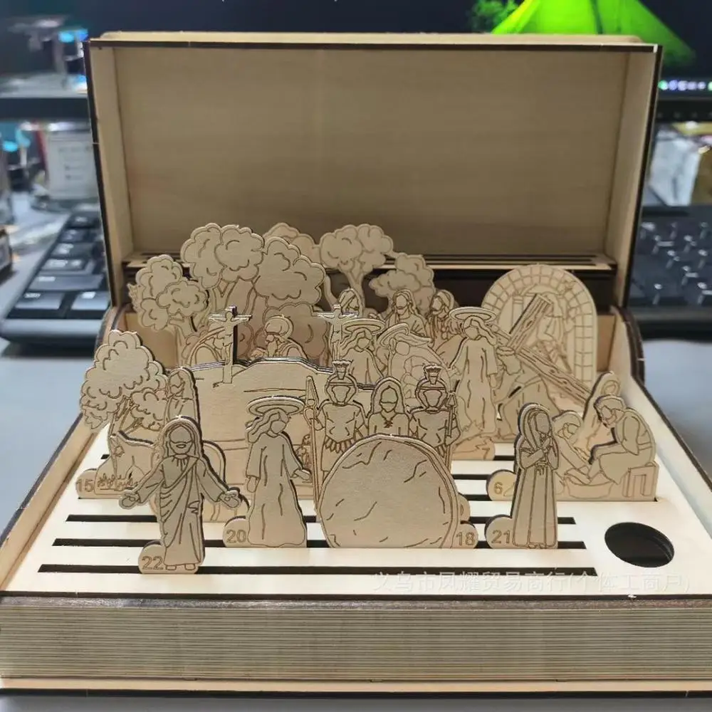 2.Interactive Learning: Dive into the profound Easter story with an informative book featuring 30 beautifully crafted wood veneer panels for easy access to profound teachings