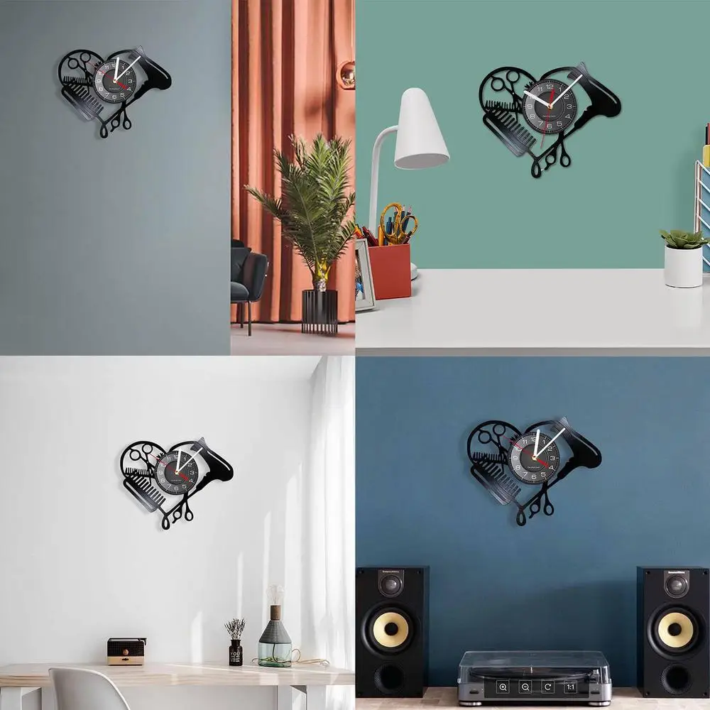 3.Creative Decor: This barbershop wall clock embodies the essence of the art of hairdressing, making them a meaningful addition to any salon or hairstyling space. The special design is decorating with charming hairdressing patterns, such as scissors, combs, and hair dryers.