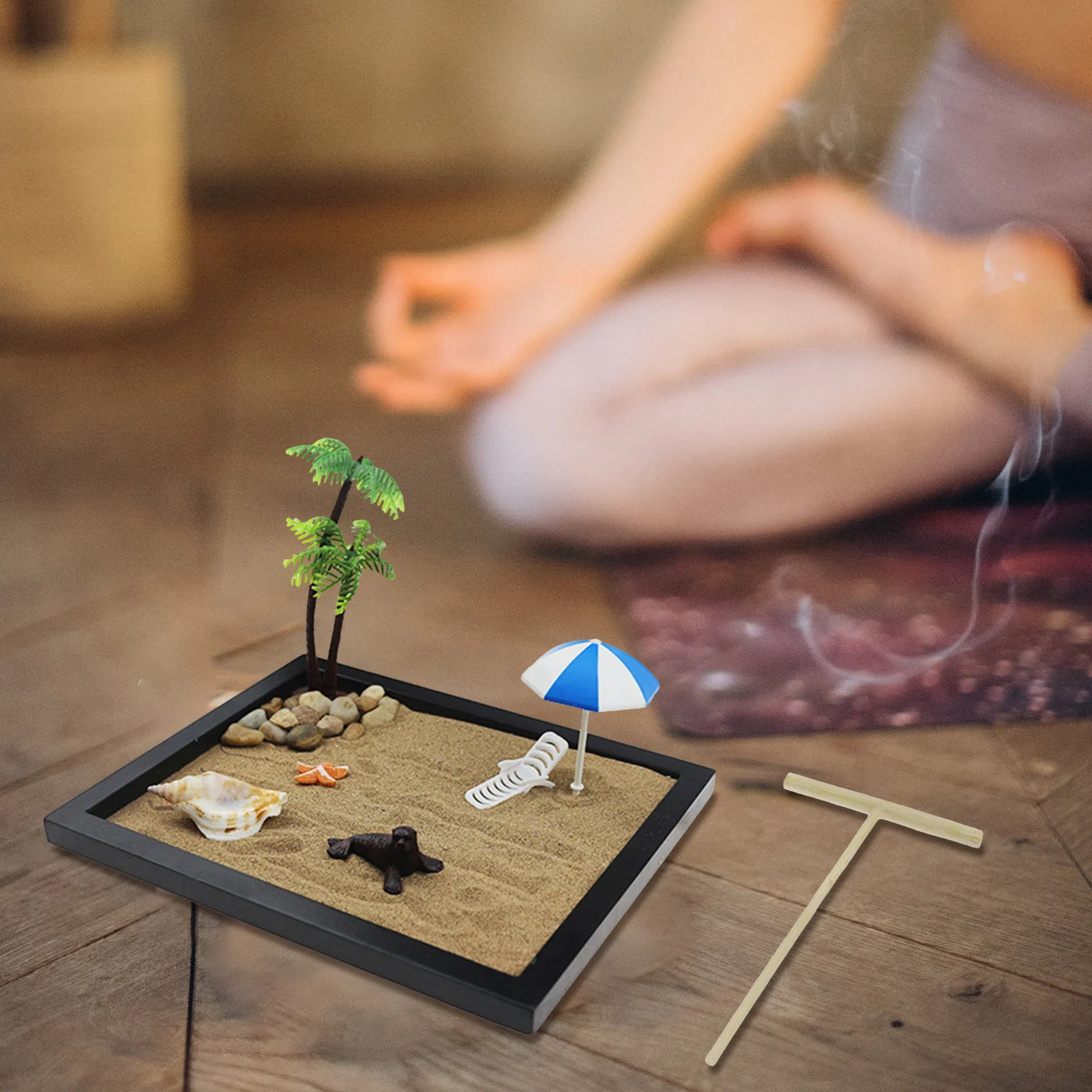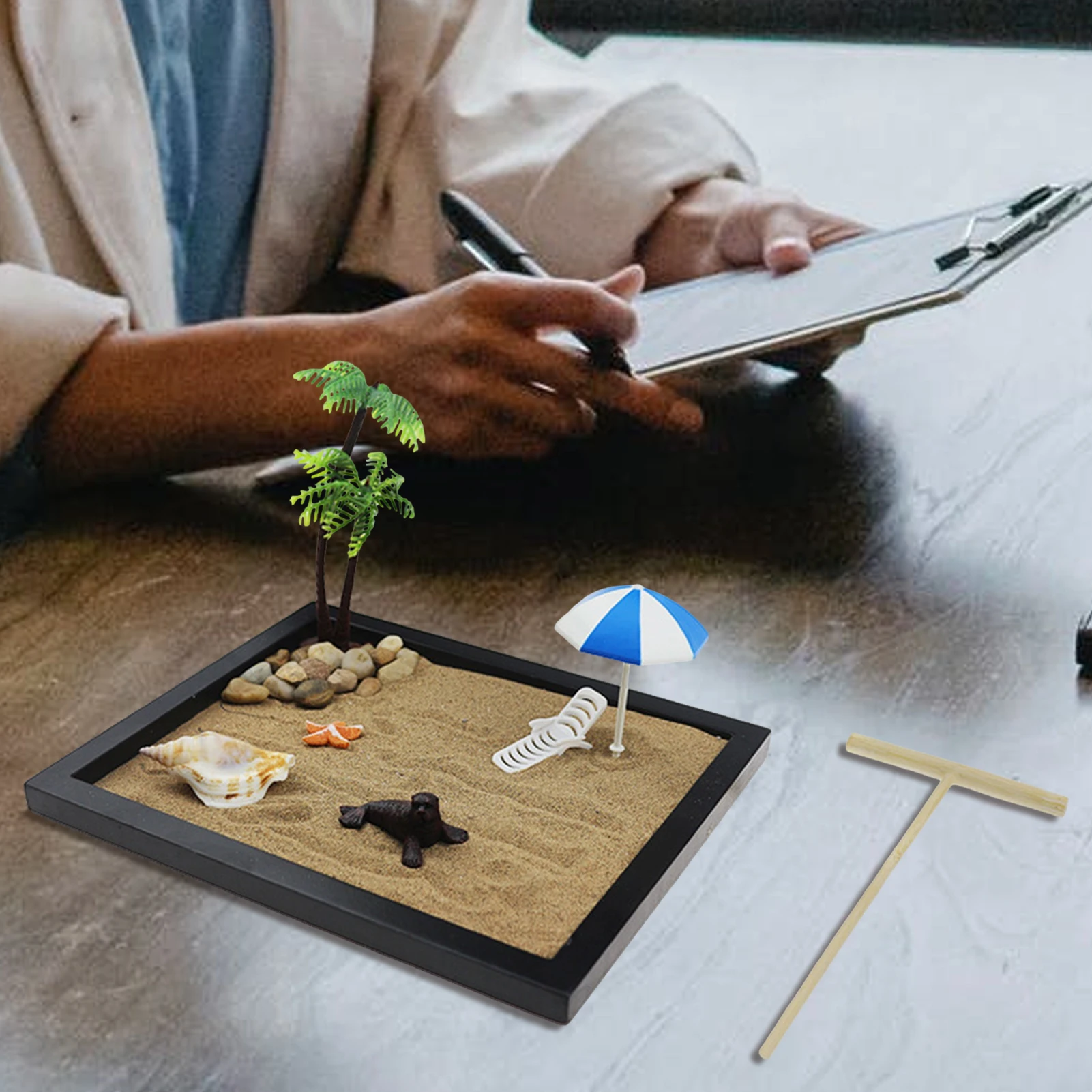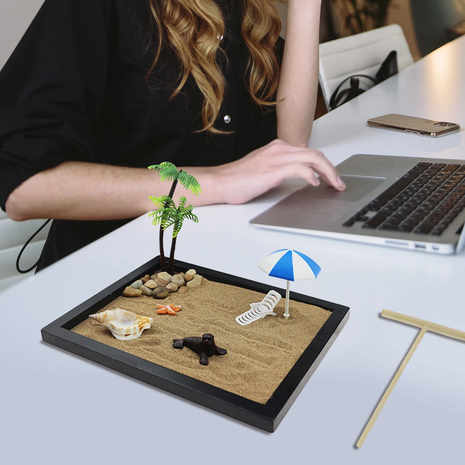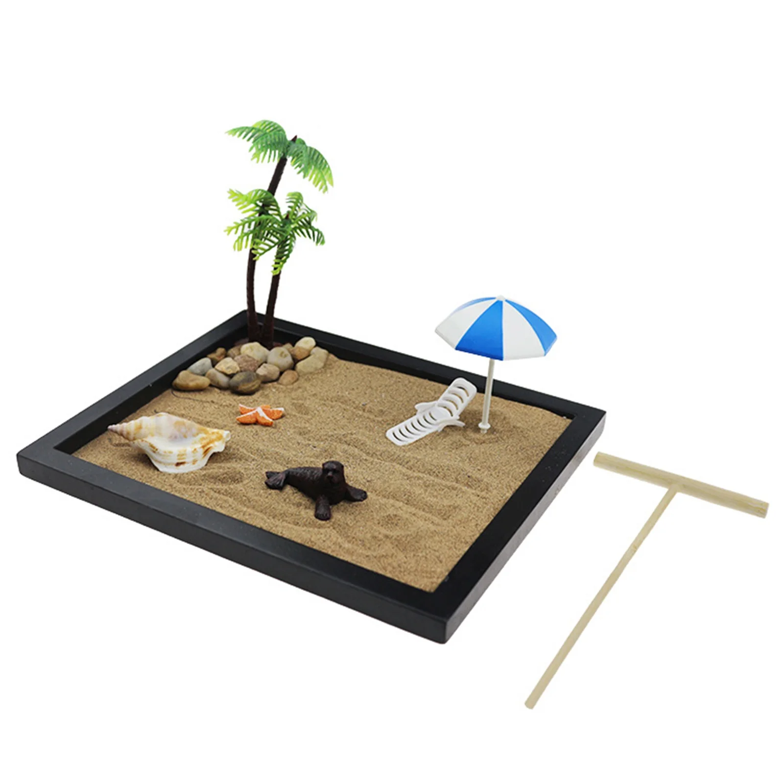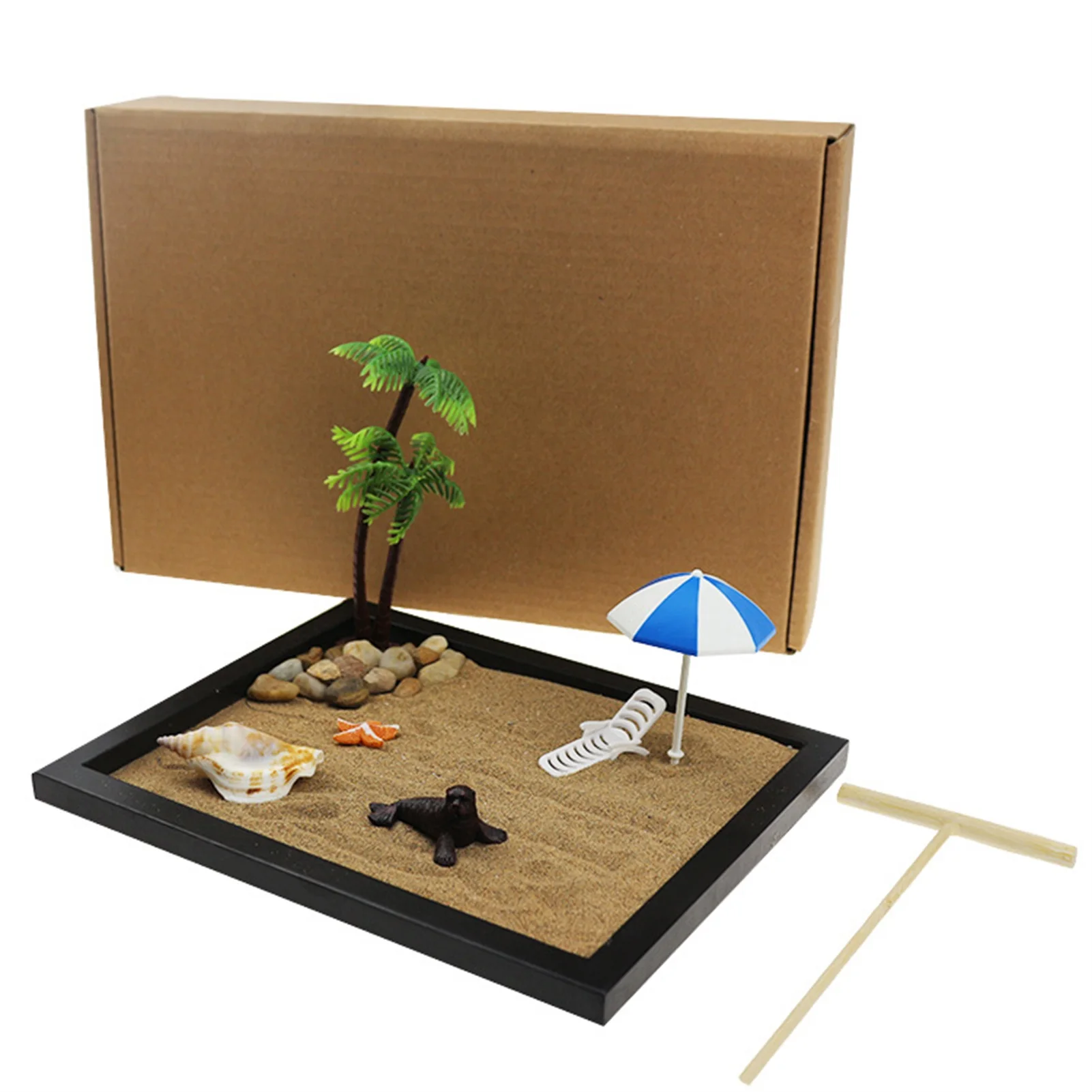 Japanese Desktop Zen Garden Kit Mini Zen Garden Sand Box Tabletop Home Decor Gift For Home Office Decoration Child Gifts