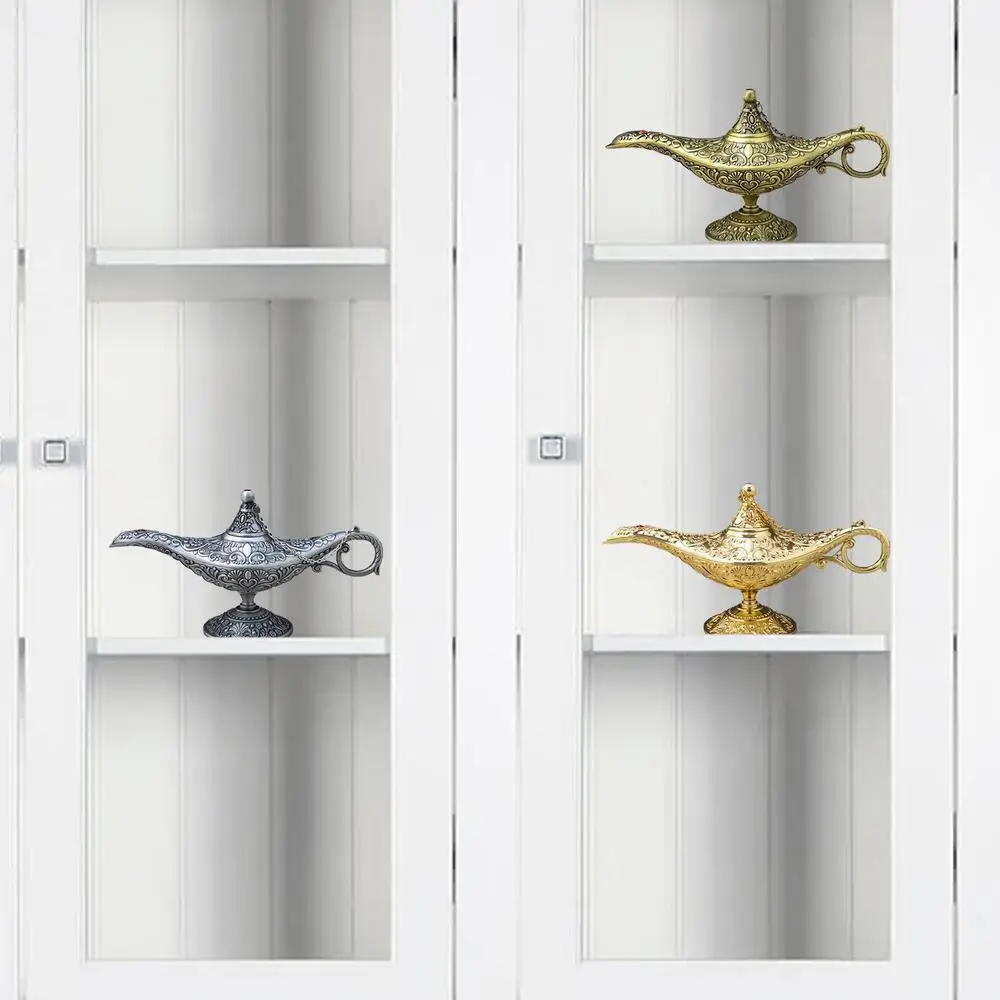 Aladdin Magic Lantern Ornaments Large Wishing Lamp Metal Home Decorations Genies of The Lamp Pot Alloy Table Decoration Gift