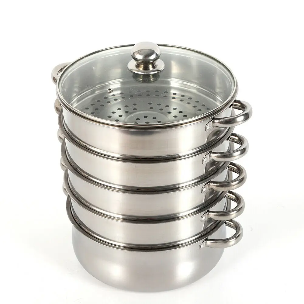 Strong Adaptability: Whether used on an induction cooker, an electric furnace, an electric ceramic stove or a gas stove, this 5-tier steamer can easily handle it.
