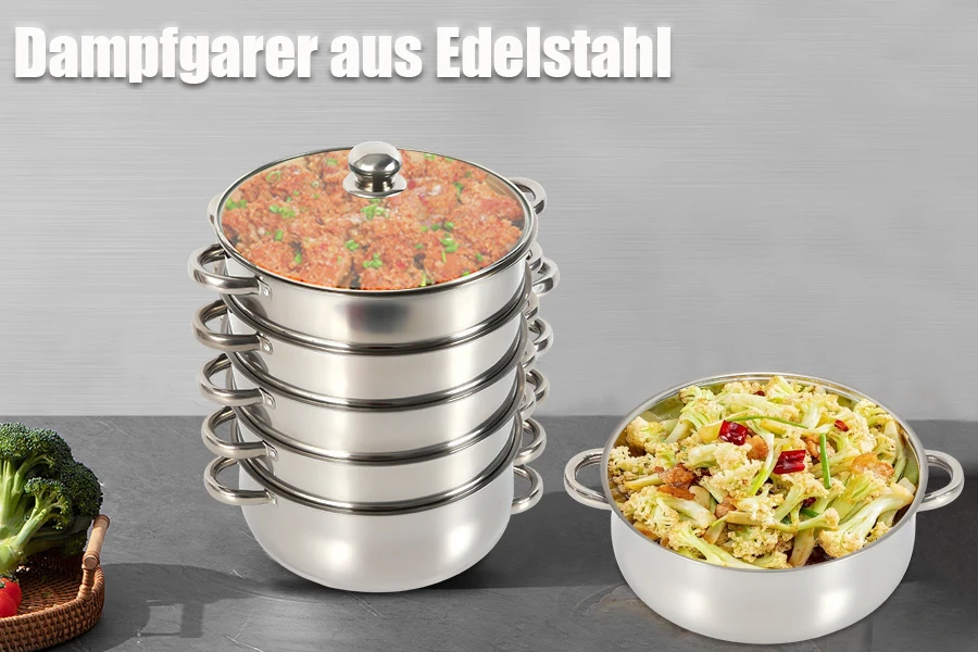 Delicious Maker: The pot body is closely connected to the grate, so the steam flow inside is stronger, which can preserve the nutrition of food and steam their delicious tastes. Five separate steamers keep food from stringing together.