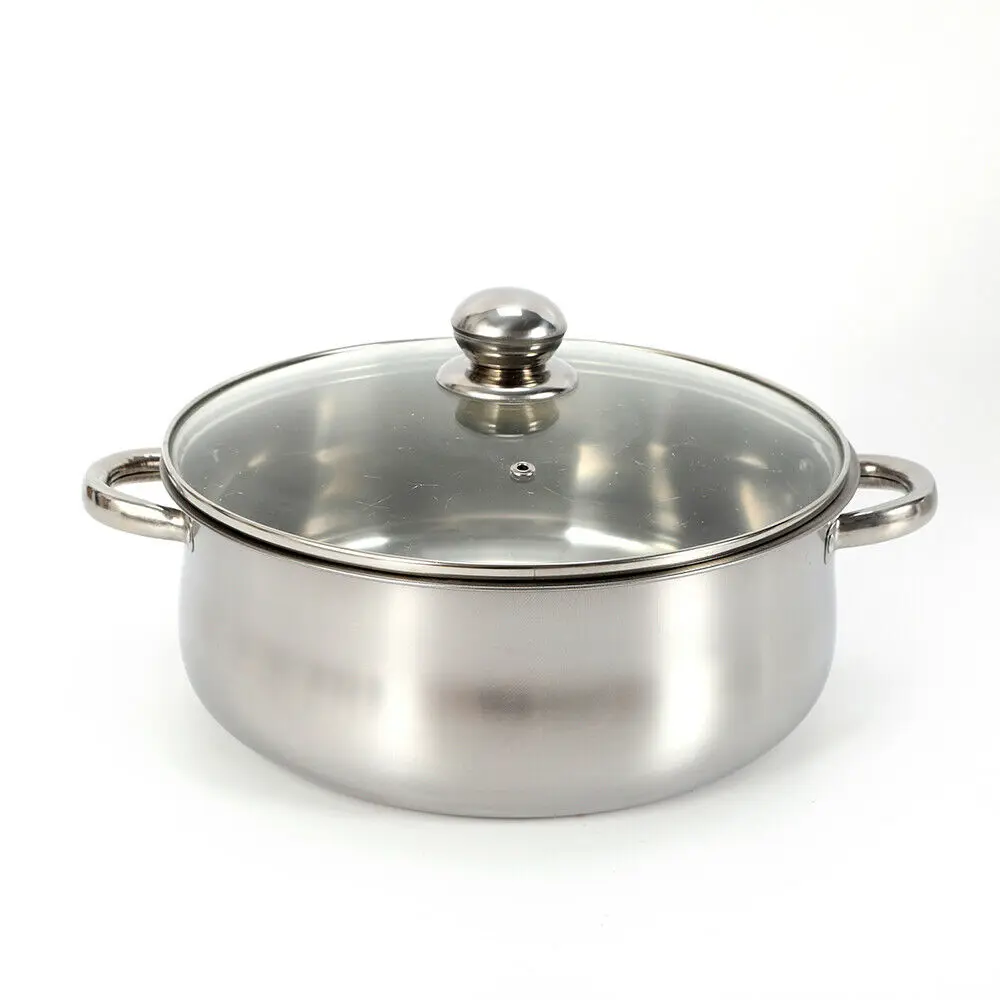 High-quality Material: The pot is made of high-quality stainless steel body and an explosion-proof glass lid, which is resistant to hightemperatures, and not easy to deform and rust to have a long service life.