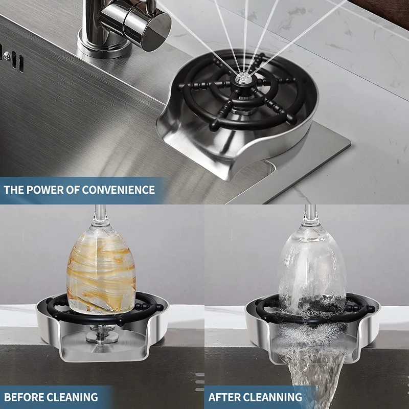 This item is very cool! I can't believe I've rinsed my glasses with a simple faucet in the past. I feel like such a fool. Now it's so easy and I actually use less water than I did when I had this glass mouthwash. Every home should have one of these.