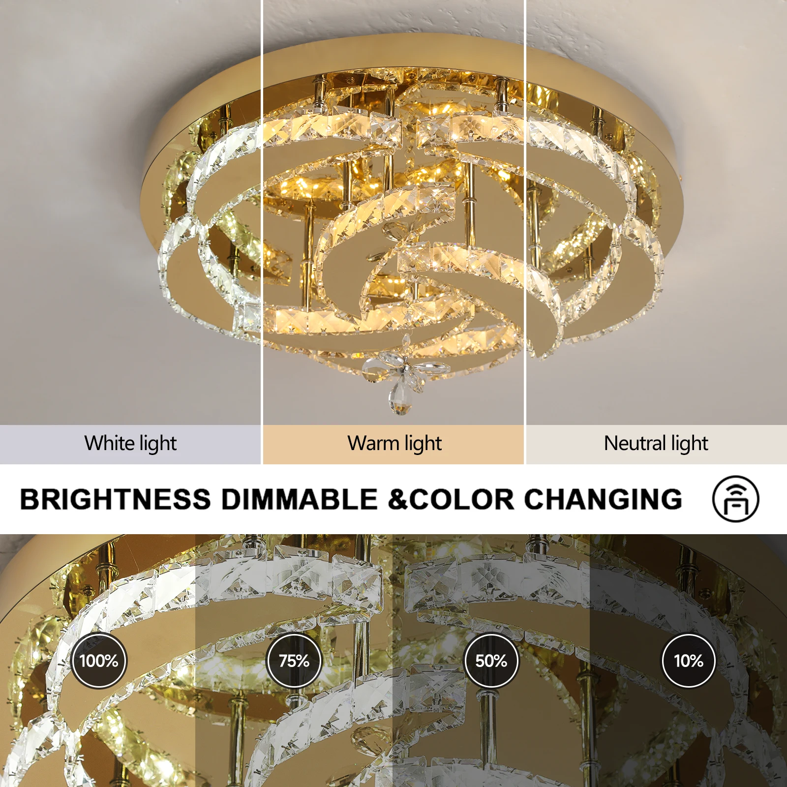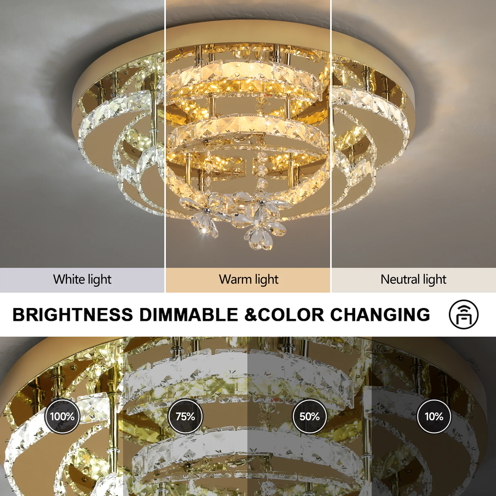 2.CCT changeable : 3 colors changing with button.