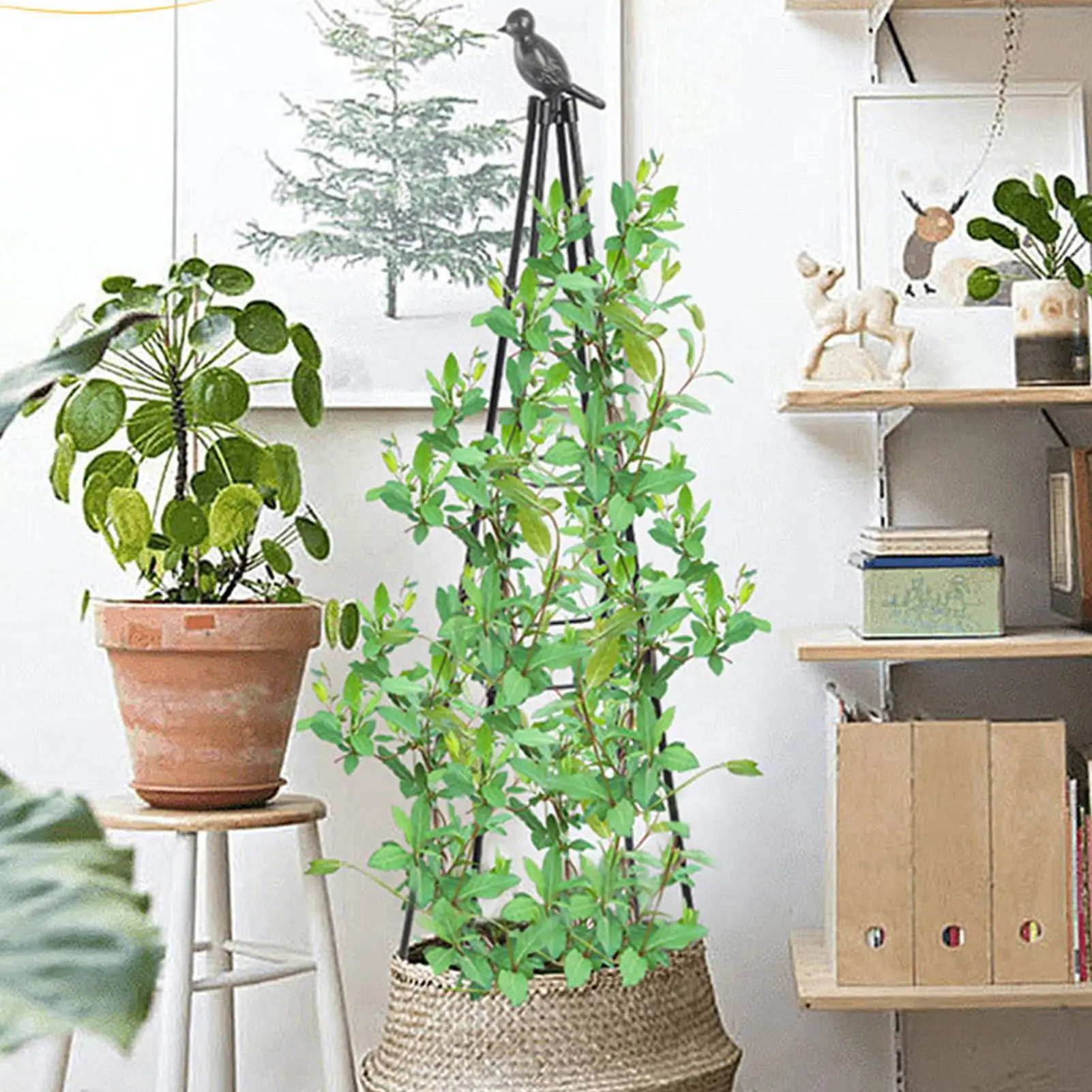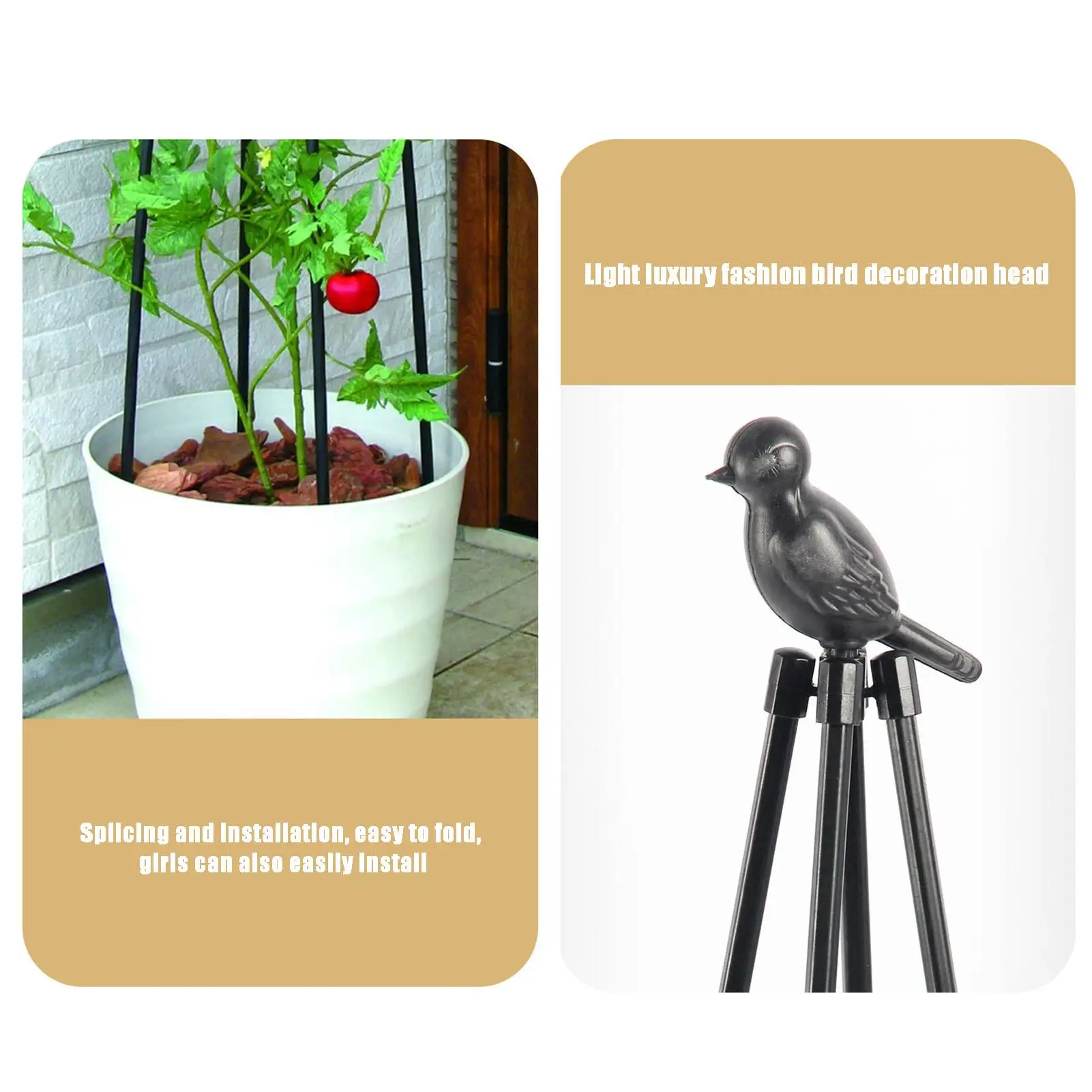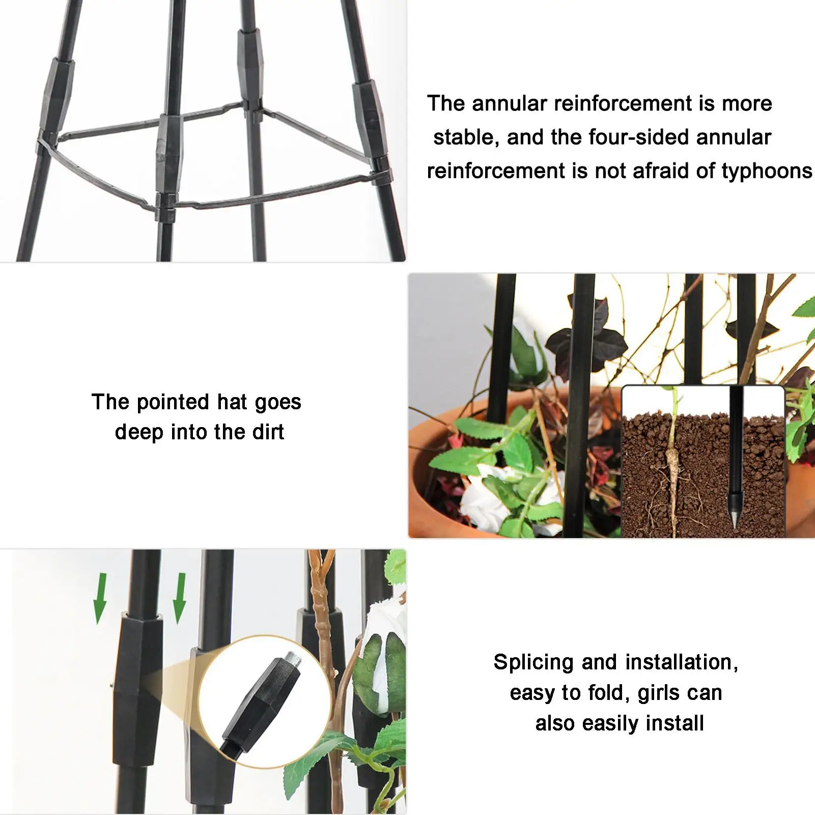 Plant tower trellis Can help the growth of roses, clematis, ivy, jasmine, morning glory, tomatoes, cucumbers, eggplants, blackberries, beans, grapevines, long stems, fruit vines, houseplants, etc. The ergonomic design ensures that your plant's fruits and leaves do not weigh down the stem.