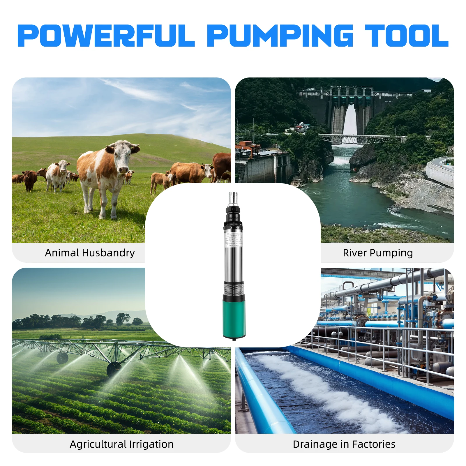 This deep well pump is made of high-quality stainless steel, and its excellent resistance to pressure and corrosion ensures that the product remains stable and less prone to deformation in extreme environments. It has a premium motor and high speed (4500r/min) to ensure stable water flow output. Whether it is to meet the demand for pure water in daily life, or to help the irrigation project of vast farmland, it can easily handle the task