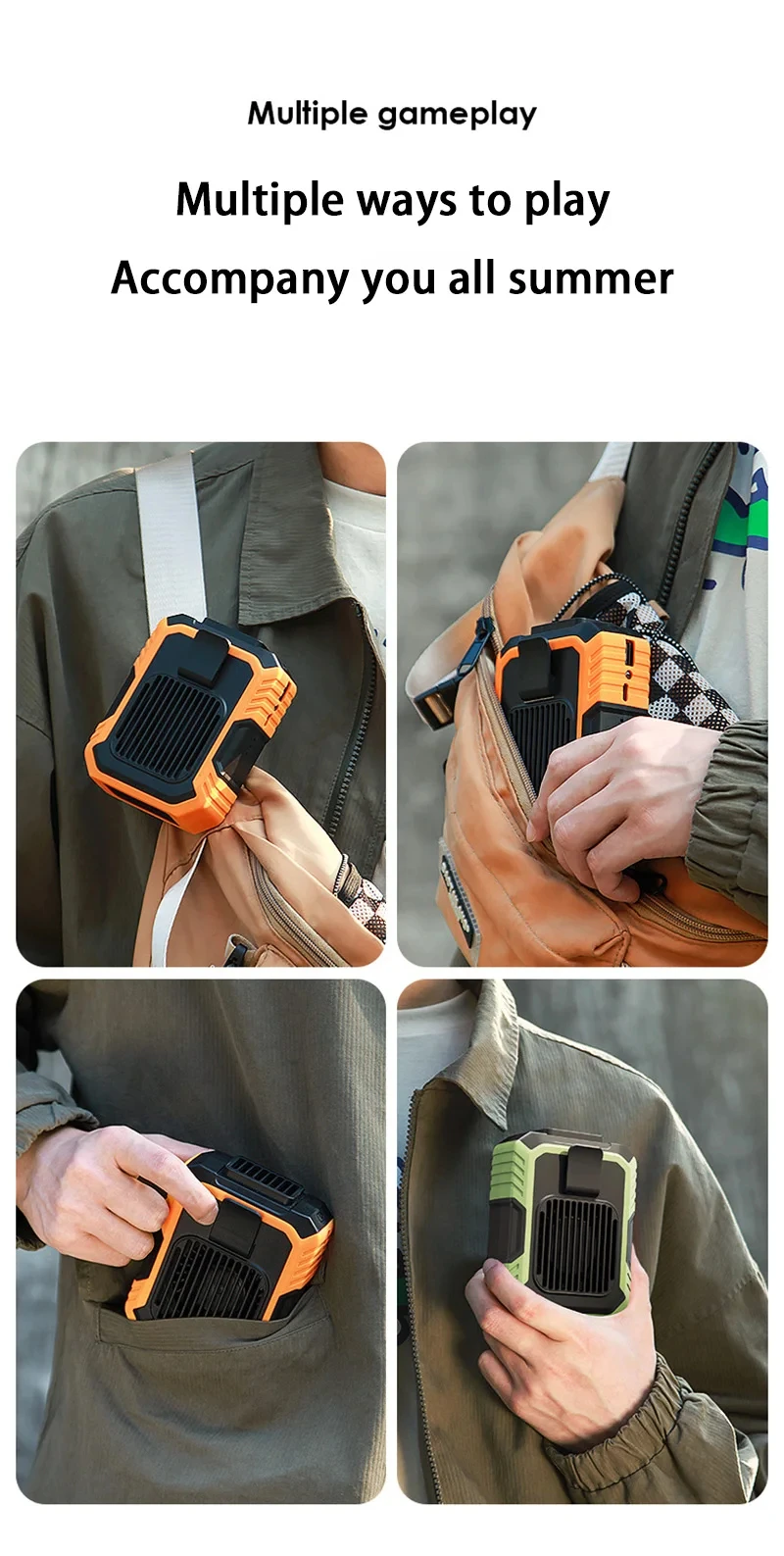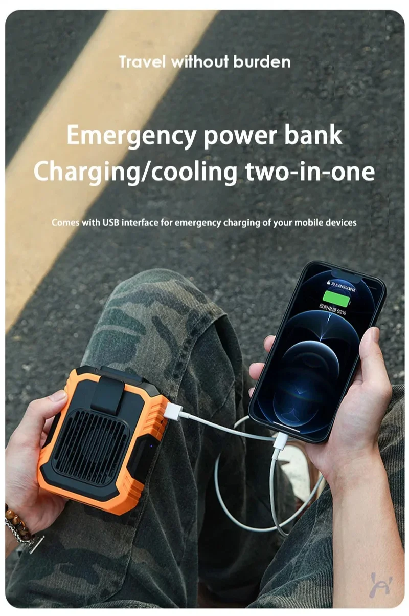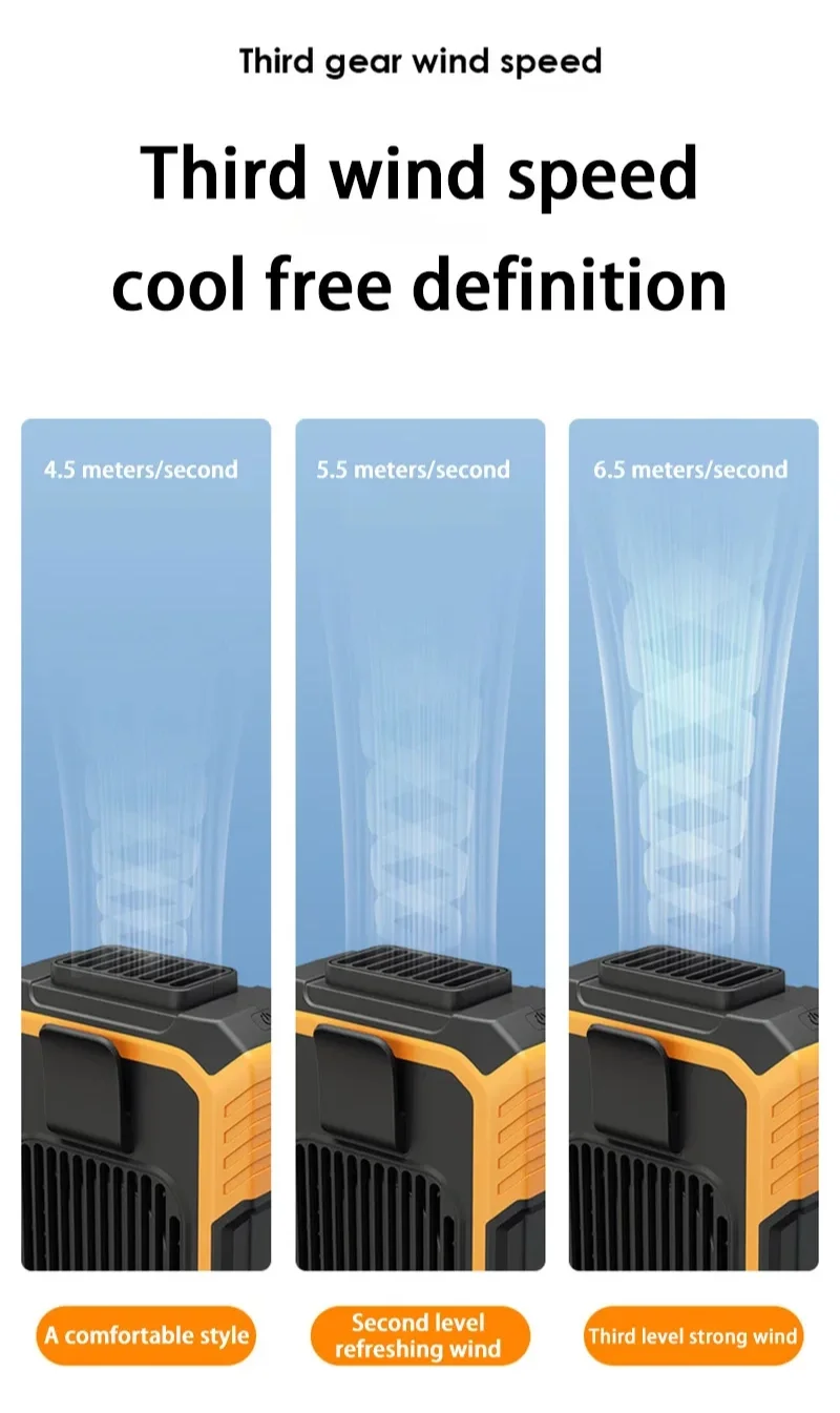 Function: Three wind speeds; Remaining power display (indicator on the side); Power bank