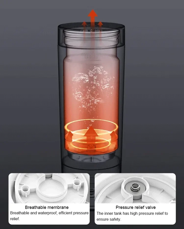 It adopts the dual safety design of breathable membrane + pressure relief valve to effectively eliminate the pressure in the inner tank during the heating process.