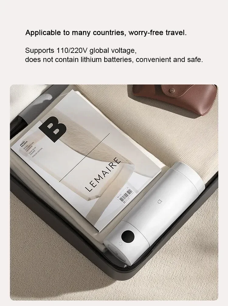 It supports 110/220V universal voltage in many countries and does not contain lithium batteries, making it a considerate travel companion.