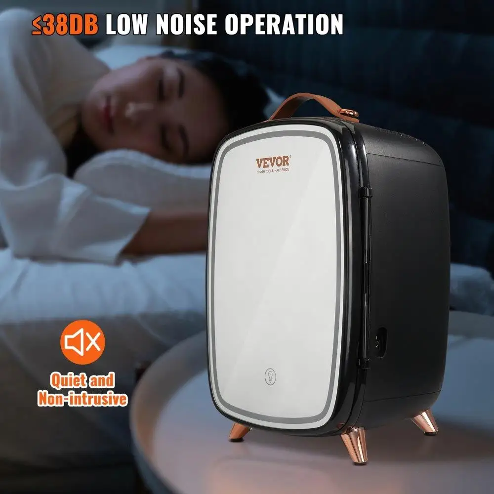 Vevor for Mini Fridge, 6L Skincare Fridge with LED light and HD Mirror, AC/DC Makeup Fridges for skin Care, Cosmetic Storage, Chill Face Mask Drink, Small Refrigerator for bedroom Dorm Desktop, Black