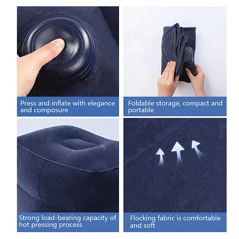 2. The inflatable flight footrest pillow has a 2-in-1 double valve for easy inflation.