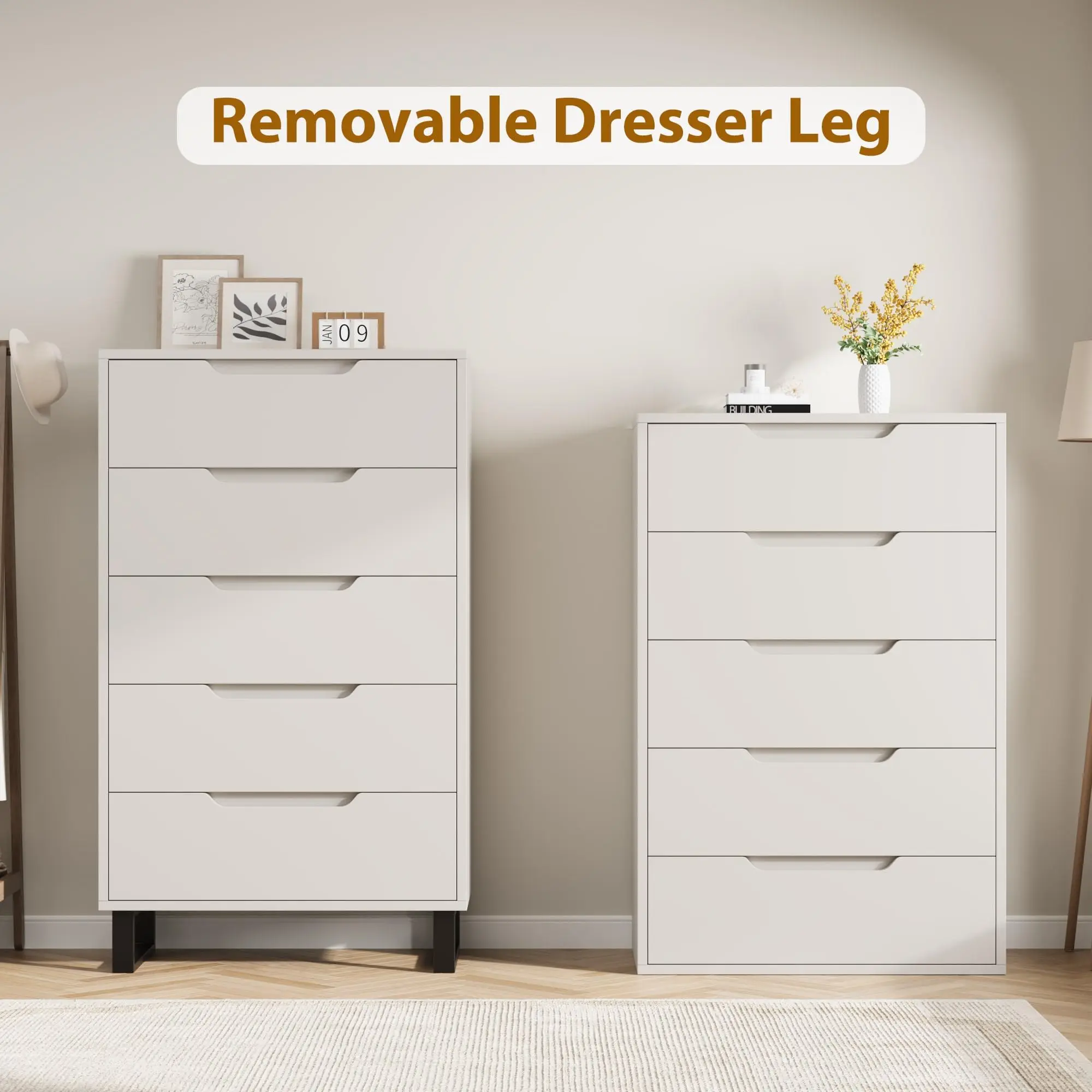 • CHIC DESIGN: The legs of 5 dressers are detachable, which allows you to adjust the use according to your needs, maximizing its functionality. The space at the bottom of the cabinet behind the cabinet legs supports the passage of the sweeping robot, which is convenient for daily cleaning