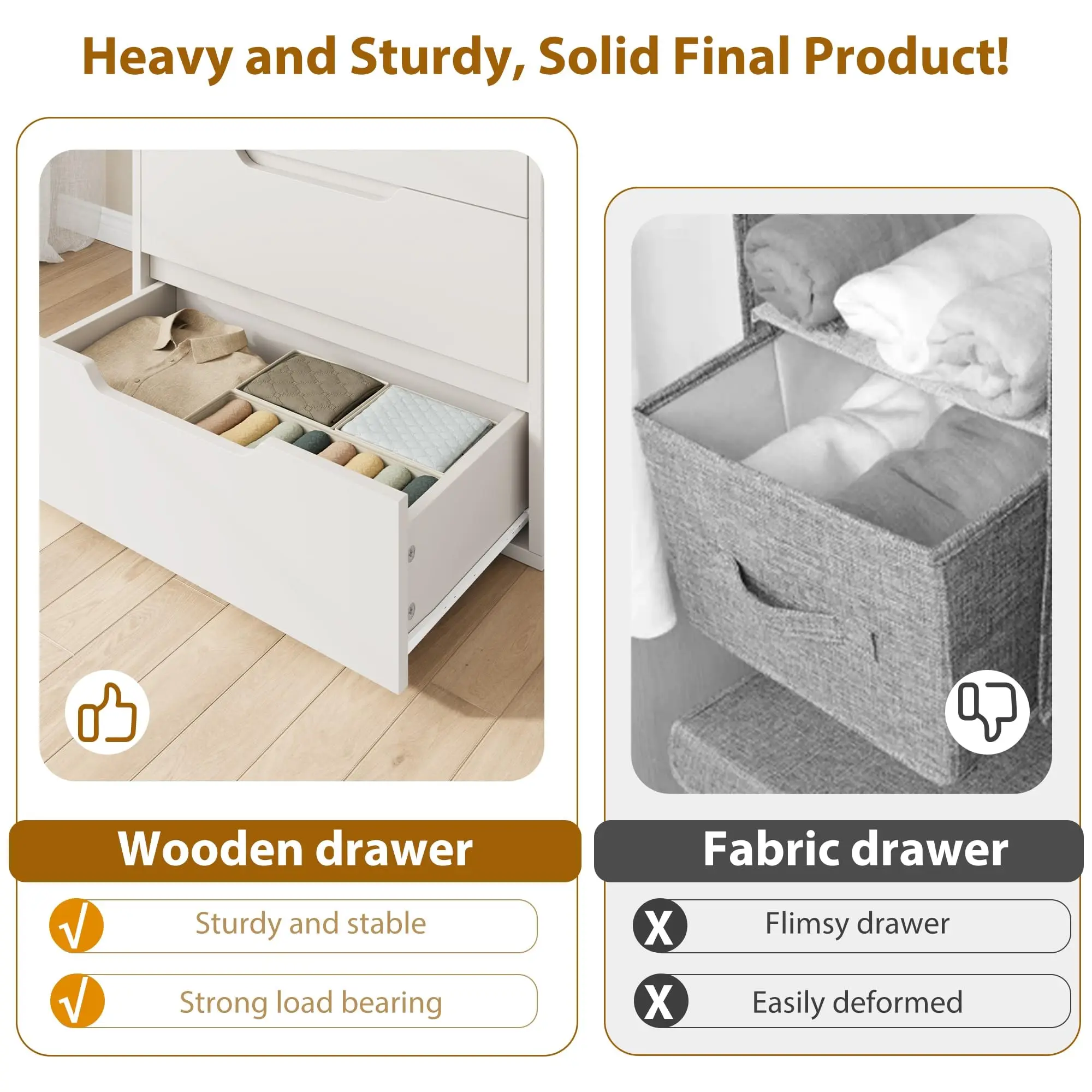Dresser, 51" Tall Dresser,Freestanding Vertical Drawer Dresser with Storage, Wooden Closet Dresser Storage Dresser Chest,White