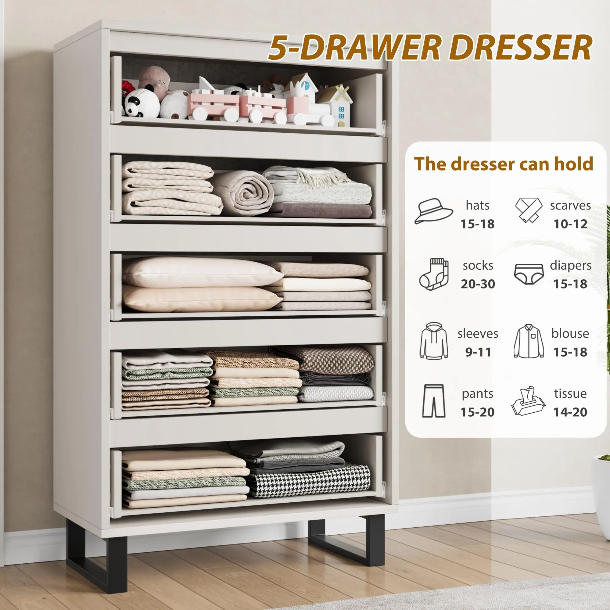 • AMPLE STORAGE SPACE: Our 5-drawer dresser provides generous storage, boasting 5 ultra-deep drawers that can hold all your daily items . The expansive desktop offers a perfect spot for small items, lamps, and more, enabling you to easily display and elevate your room's decor style