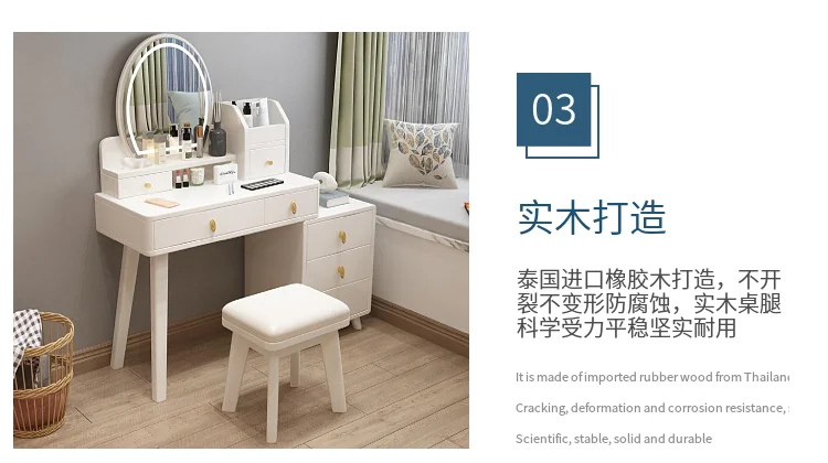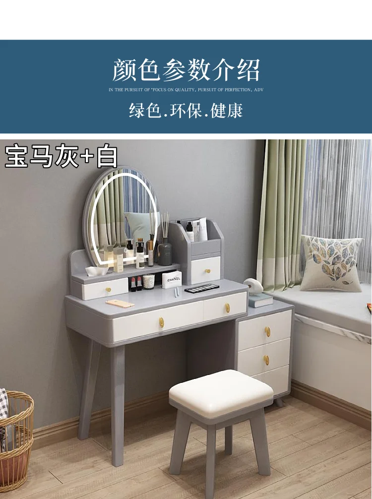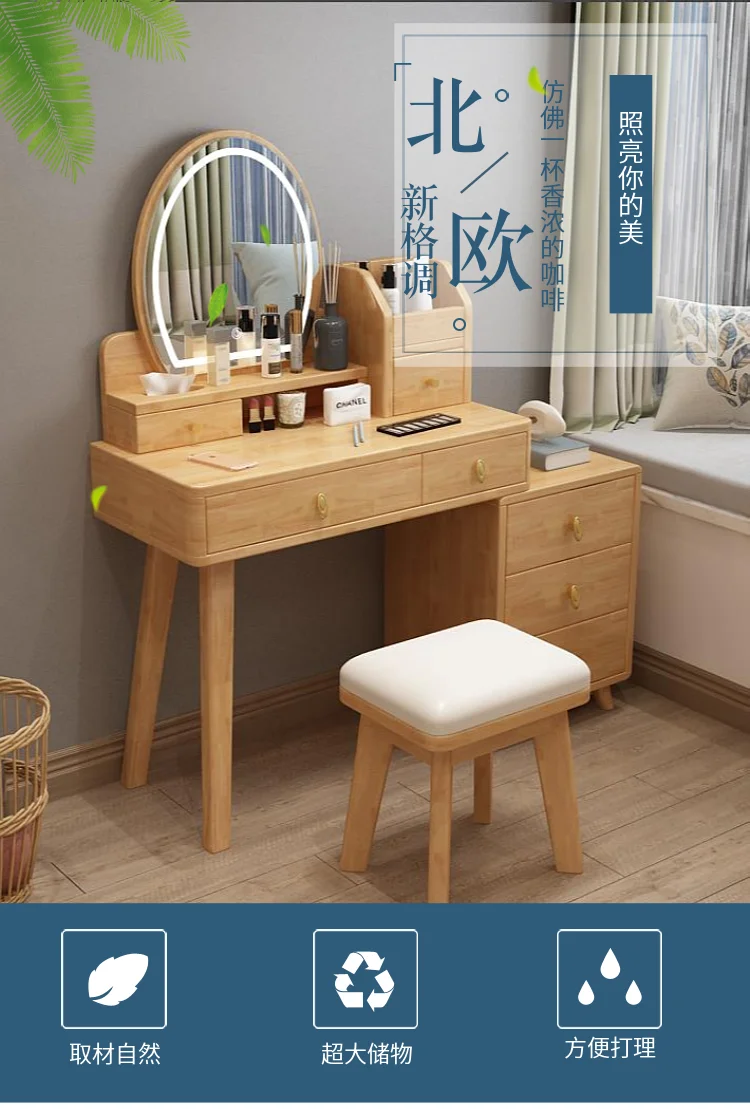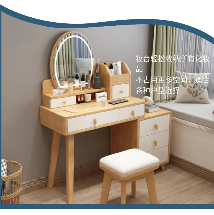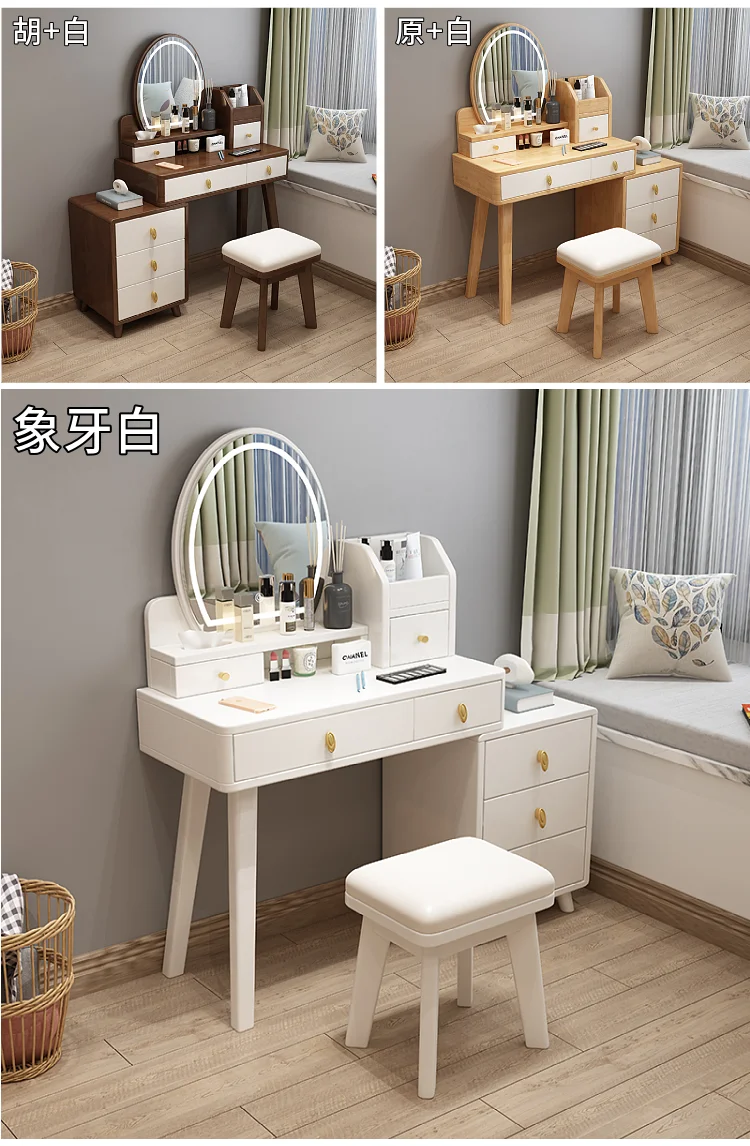 Bedroom Hairstyle Vanitys for Makeup Drawers and Mirror Makeup Dressing Table Furniture Pink Vanity Chair Solid Wood Dresser