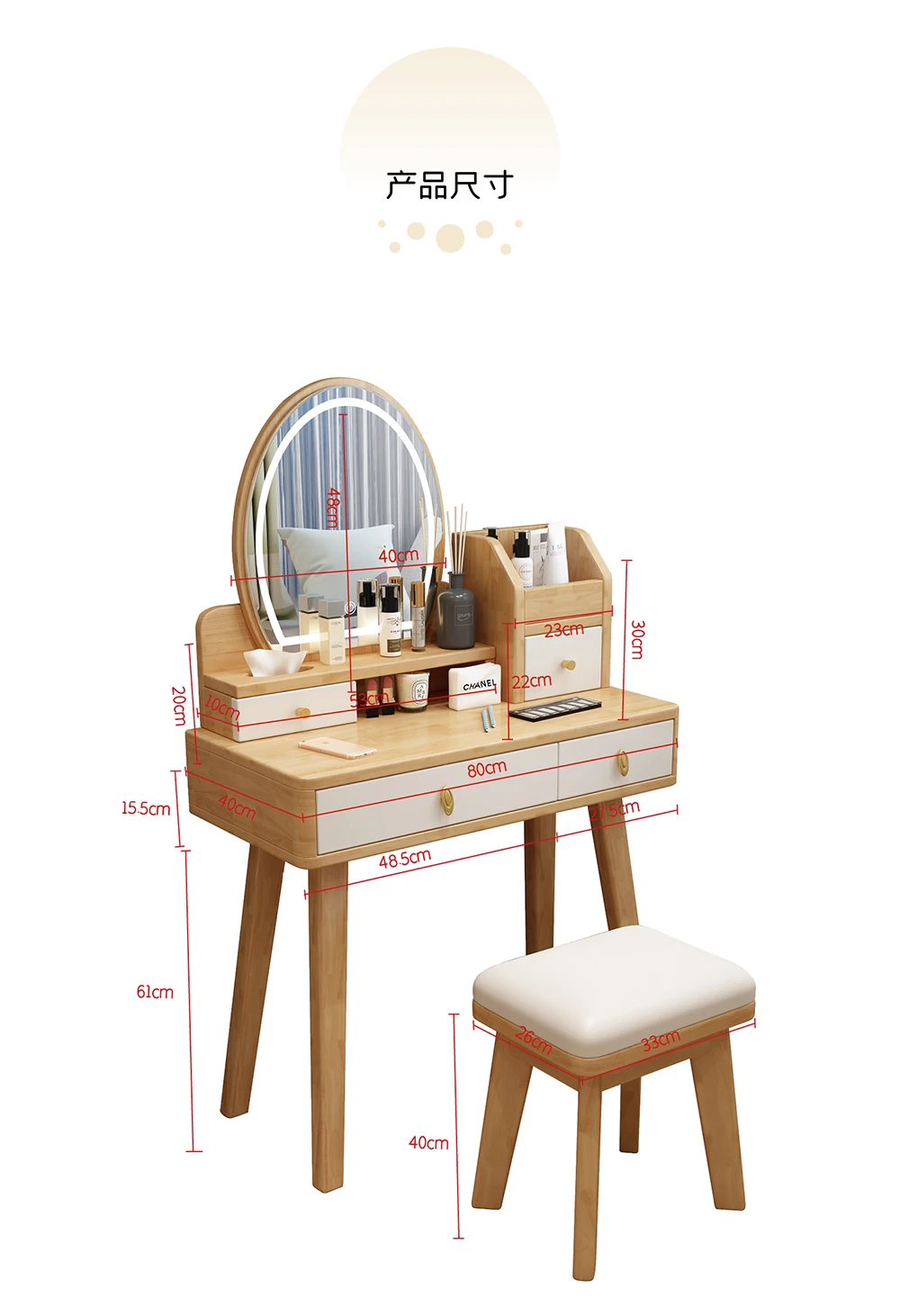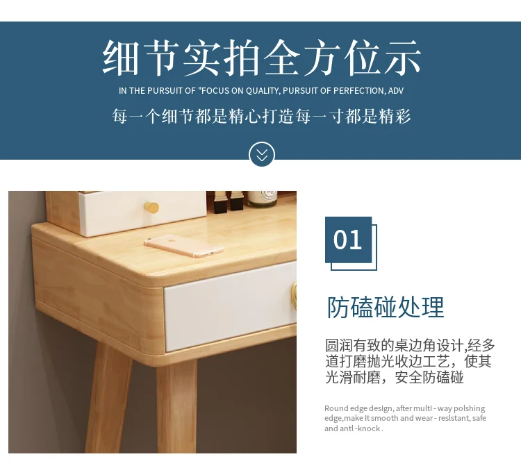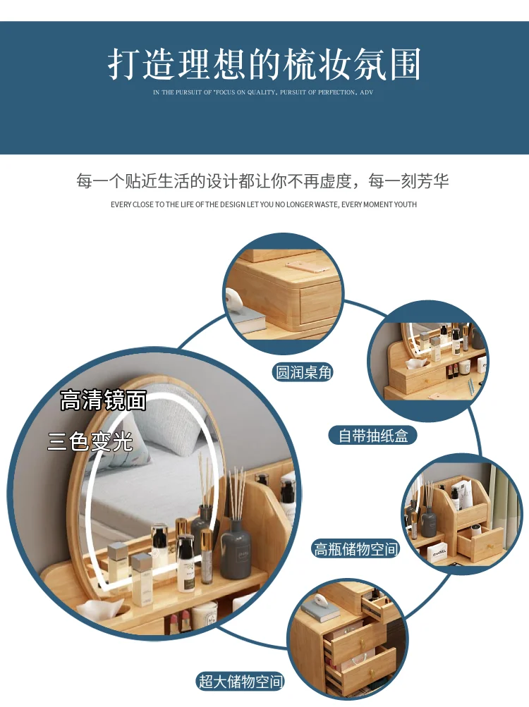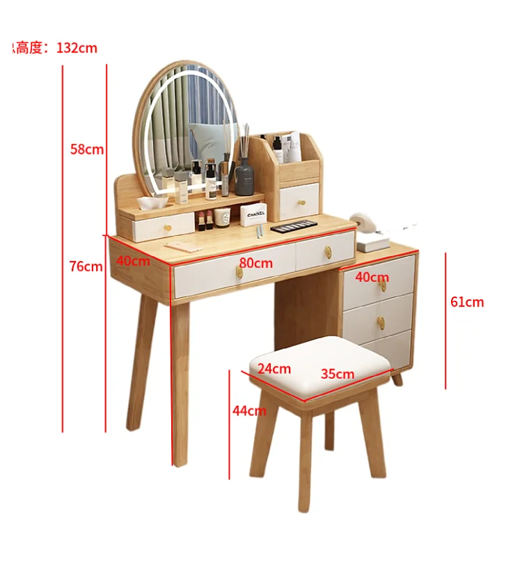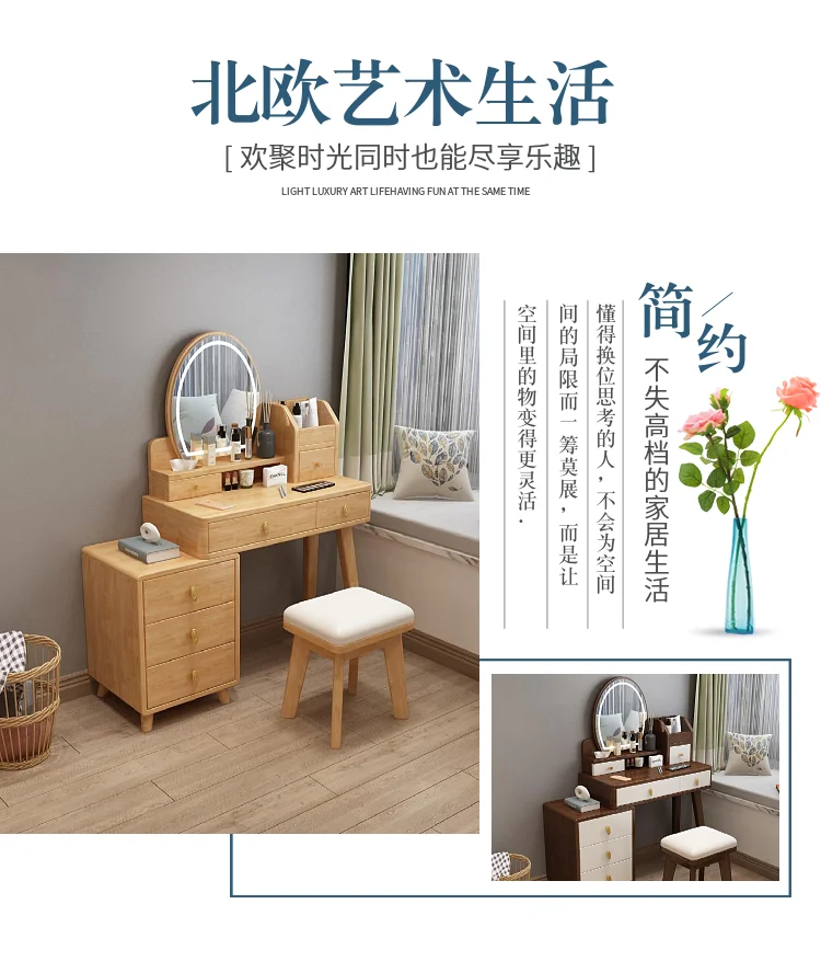 Bedroom Hairstyle Vanitys for Makeup Drawers and Mirror Makeup Dressing Table Furniture Pink Vanity Chair Solid Wood Dresser