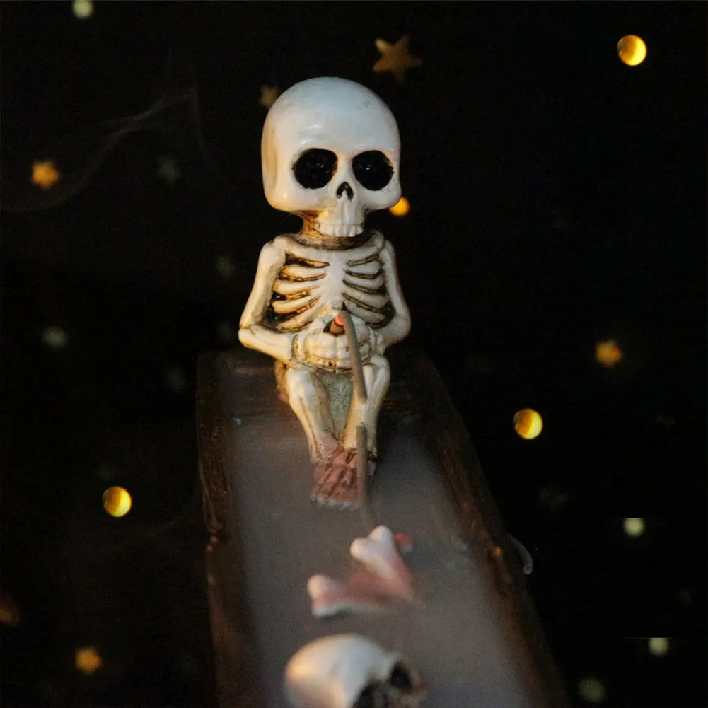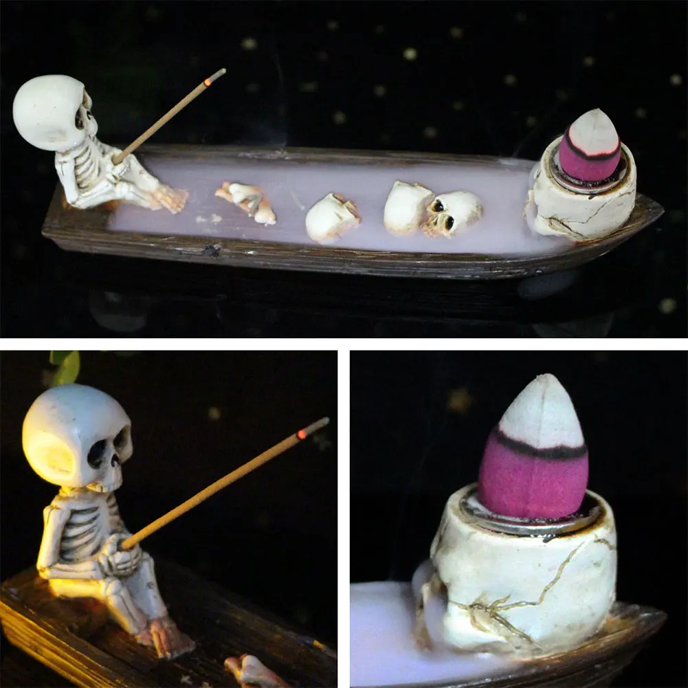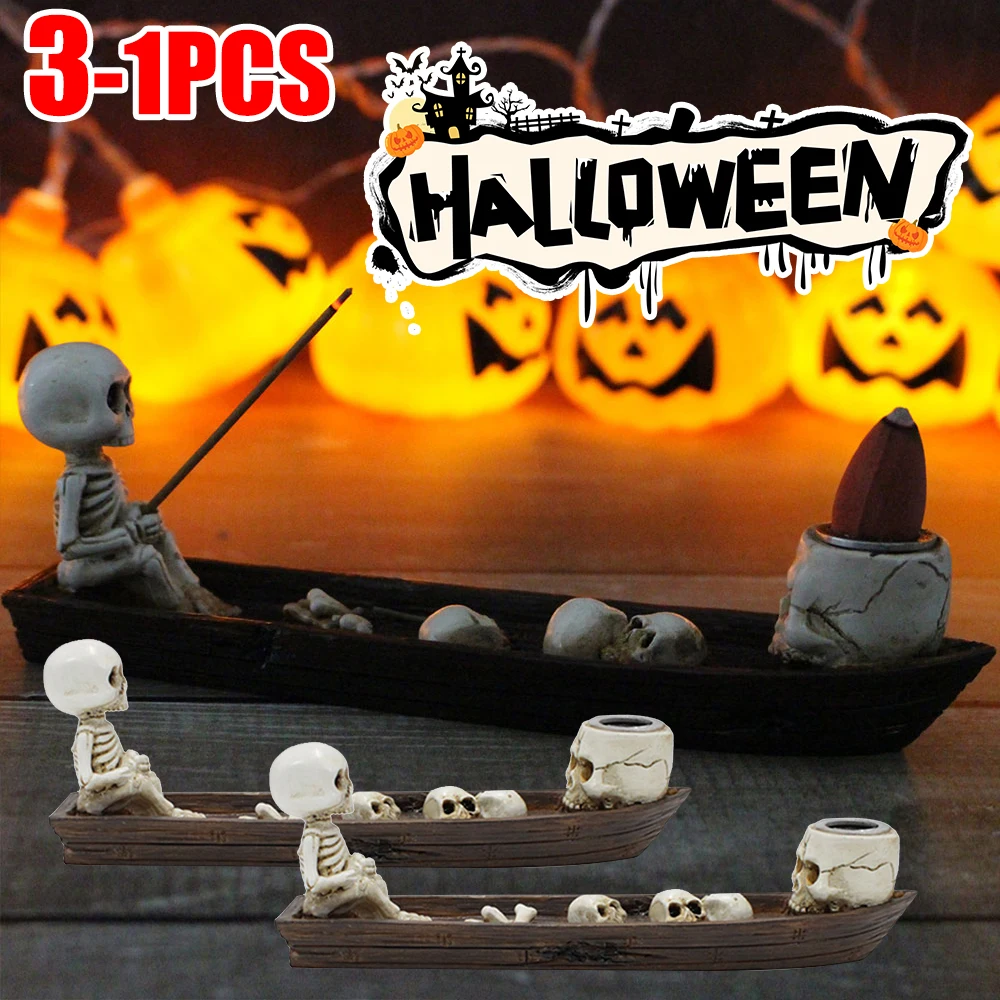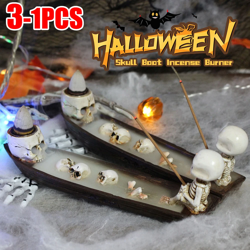 Creative Skull Incense Holder Resin Halloween Decor Ghost Incense Stick Tray Boat Decorative Incense Holder Cute Skeleton Ship Incense Burner for Study Room Bedroom Living Room Awesome And Ideal Gifts