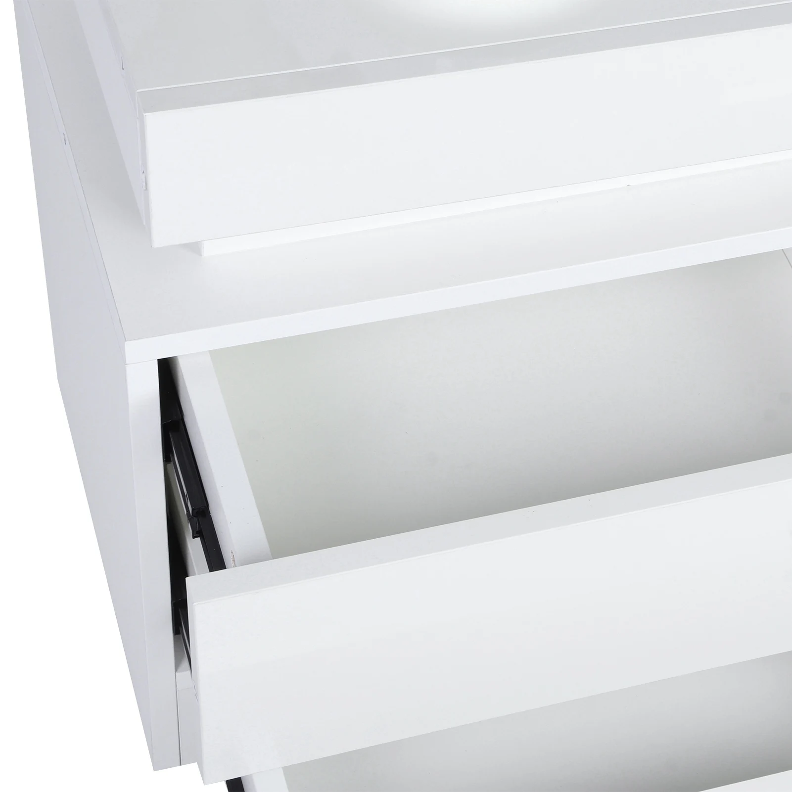 1. This bedside table is made of melamine chipboard material, and the drawer fronts with high gloss finish. The bedside unit can serve the weight capacity as high as 40kg.Specification:
