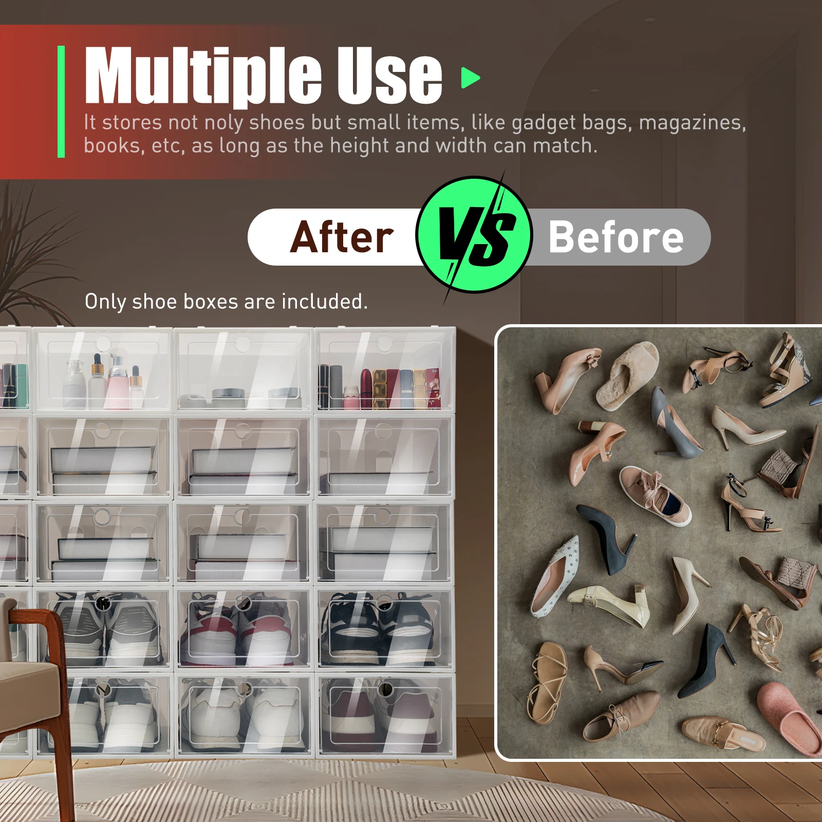 20 Pack Shoe Storage Box,Clear Stackable Shoe Organizer for Closet, Space Saving Foldable Shoe Rack Sneaker Container Bin Holder