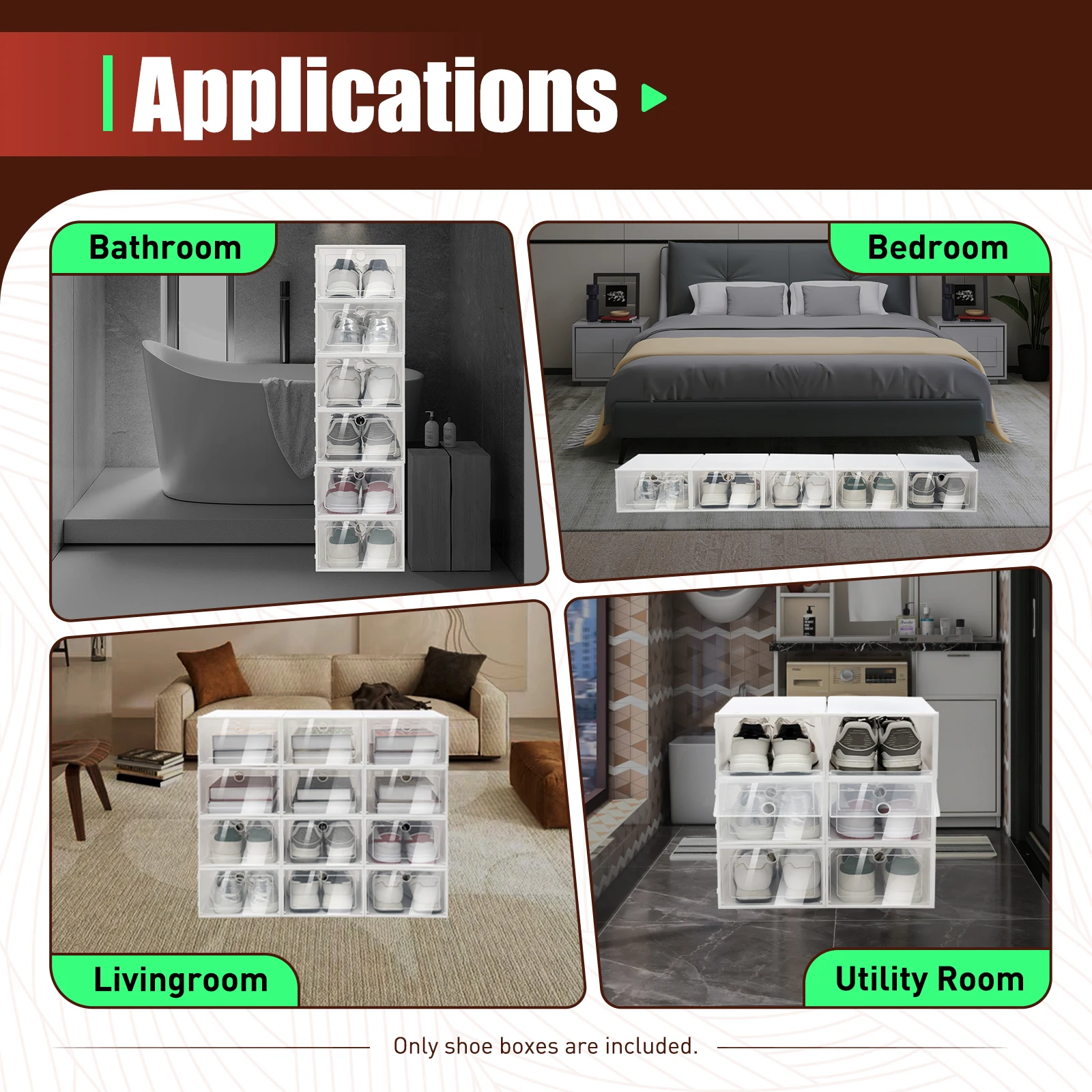 DIY Placement: These shoe boxes can be freely overlapped up and down and side to side according to your furniture arrangement and preference for space-saving and convenient storage.