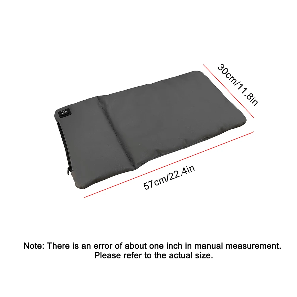 Features: Specification: Origin: Mainland China Material: Leather + Heating Plate Color: Gray, Khaki Size: Unfolded 57cm/22.4in*30cm/11.8in, Stored 30cm/11.8in*11cm/4.3in*11cm/4.3in Heating Element: Carbon Fiber Heating Heating Plate: Single Zone Temperature: Low Temperature 45℃ (±5℃), Medium Temperature 55℃ (±5℃), High Temperature 65℃ (±5℃) Power Supply Interface: Usb (Need To Bring Your Own Power Bank) Battery Life: Taking A 20000mah Power Bank As An Example, The High Temperature Can Continue To Heat For 8 Hours, The Medium Temperature Can Continue To Heat For 10 Hours, And The Low Temperature Can Continue To Heat For 12 Hours. (Due To Different Mobile Power Brands And Different External Ambient Temperatures, The Battery Life Is Only For Reference.)