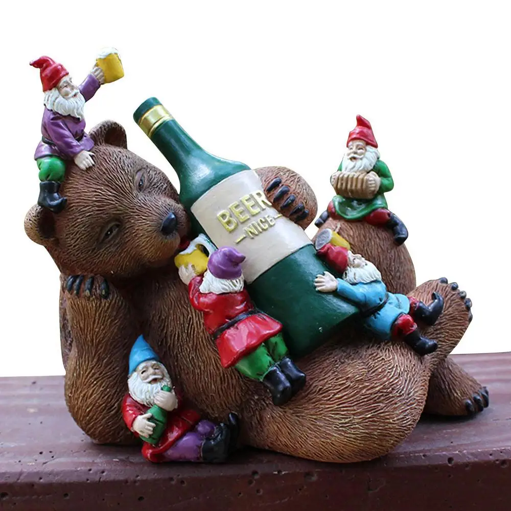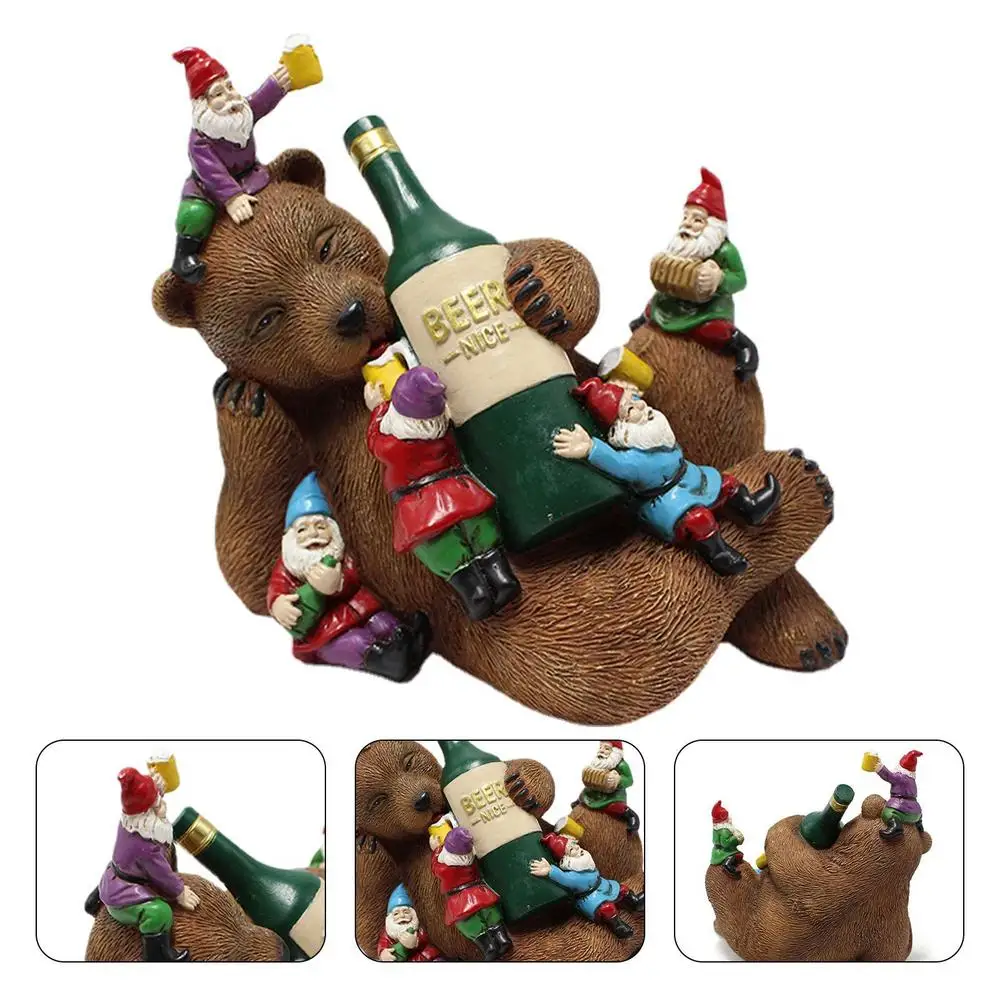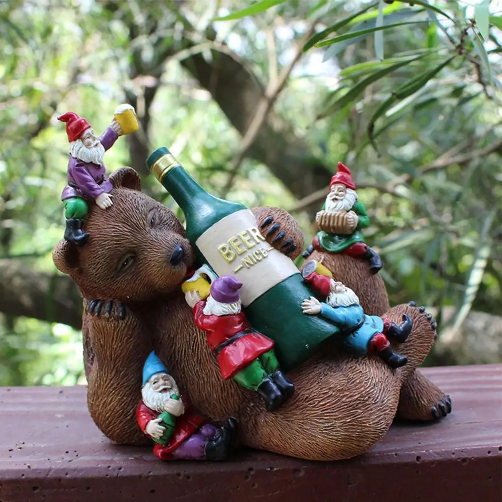 1.[ Cute and Realistic ] It's designed as five drunk gnomes sitting next to a drunk bear, and the Garden Gnome Statue looks so hilarious with its funny poses, bringing joy to your garden.